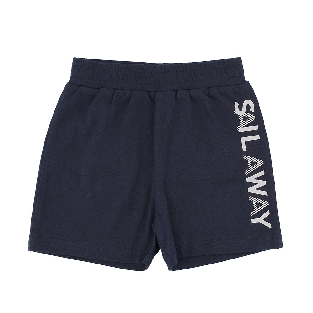 Bermuda in jersey con vita elasticizzata. Stampa con scritta e tasca sul retro.