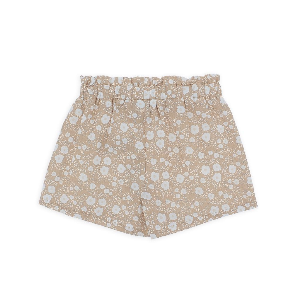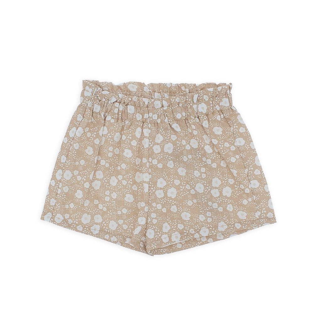 Shorts in seersucker stampato a fiorellini con vita elasticizzata. Tasche laterali alla francese.