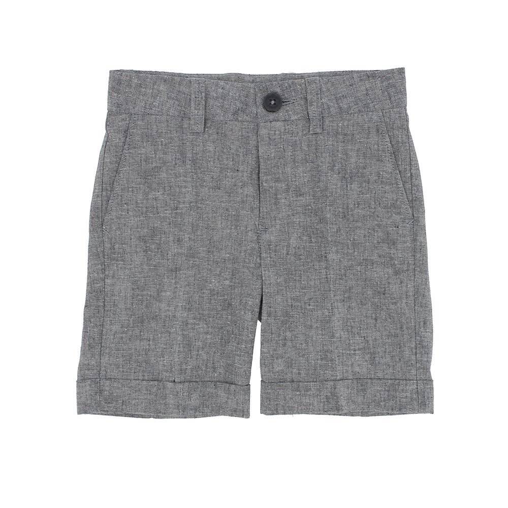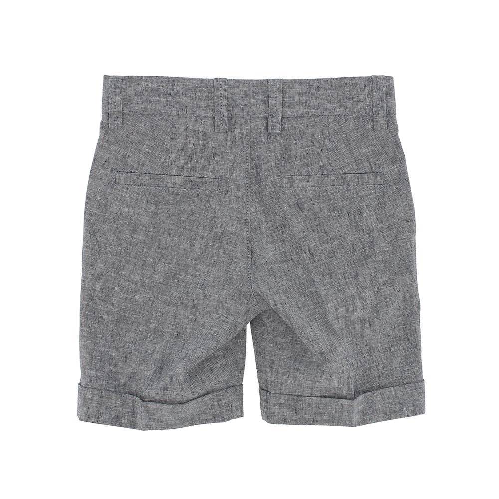 Bermuda tinto filo con vita regolabile all'interno. Chiusura con bottone e zip. Tasche laterali alla francese e tasche posteriori a listino. Fondo con risvolto.