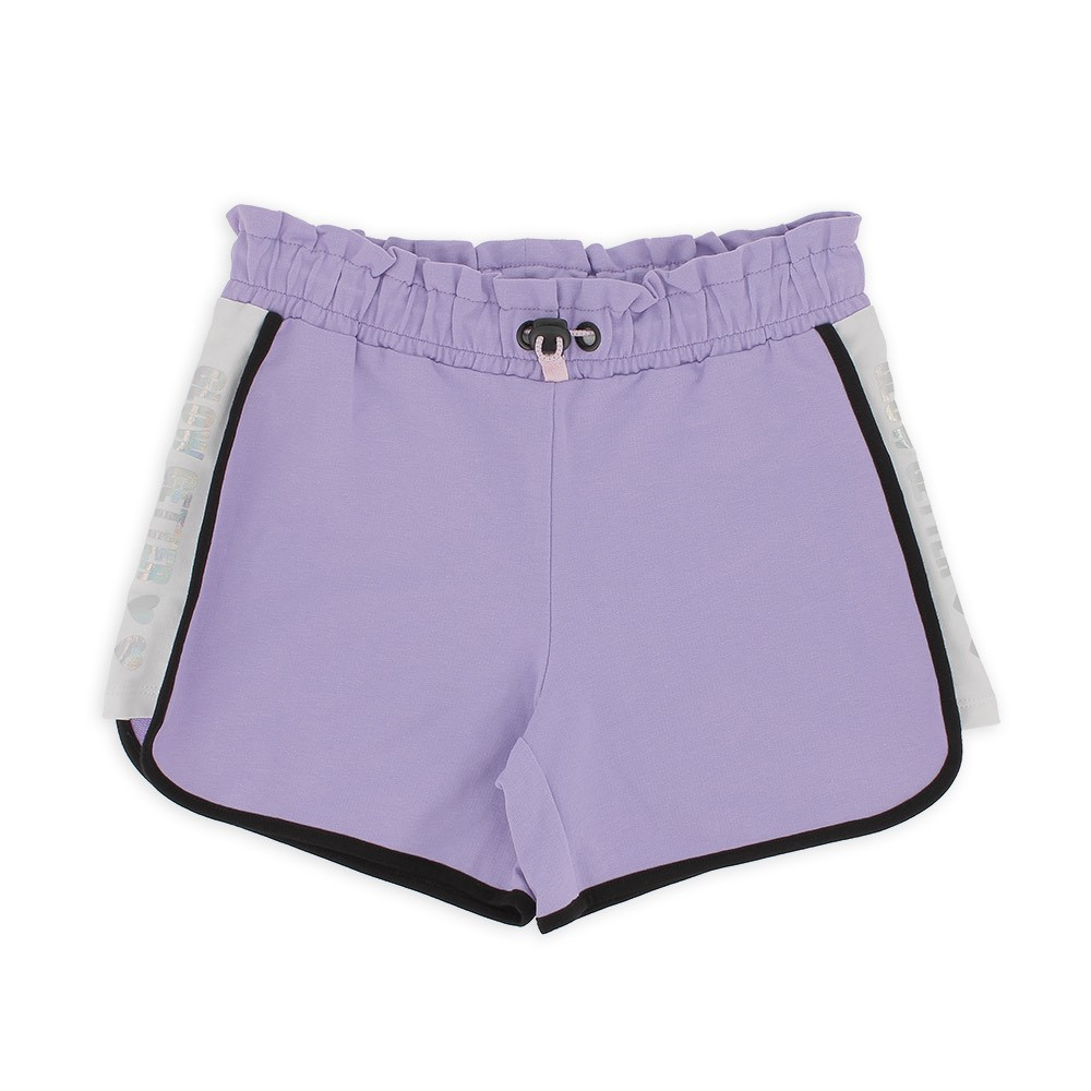Shorts in felpa leggera con vita elasticizzata e coulisse elastica regolabile. Profili a contrasto e bande laterali con stampe iridescenti.