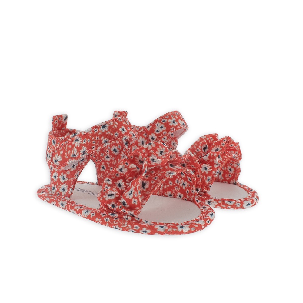 Sandalo newborn con velcro e fondo a contrasto. Volants sulla parte davanti.