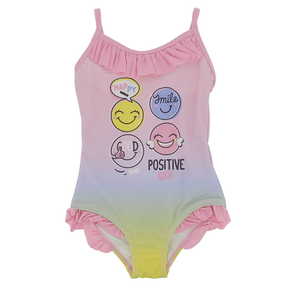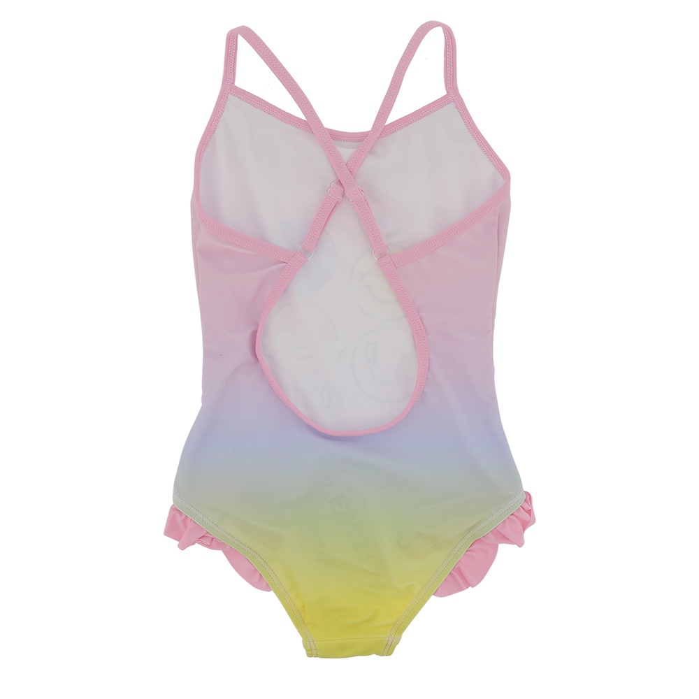 Costume intero a fantasia con bretelline incrociate piccole rouches sul davanti e sui fianchi.