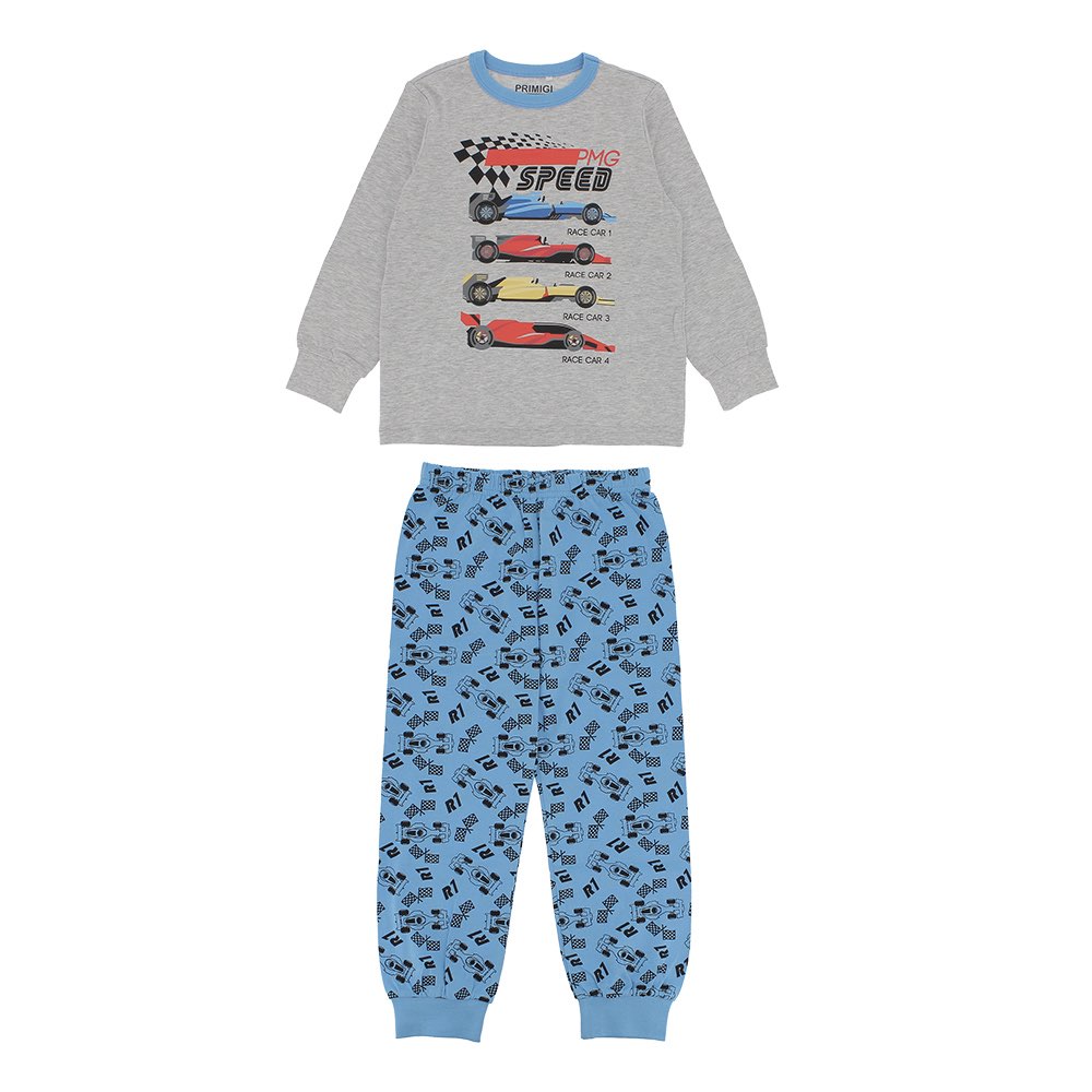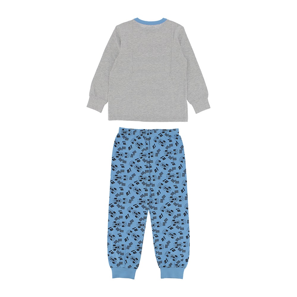 Completo pigiama in jersey. Maglia girocollo a maniche lunghe, con stampa sul davanti. Pantalone con vita elasticizzata.