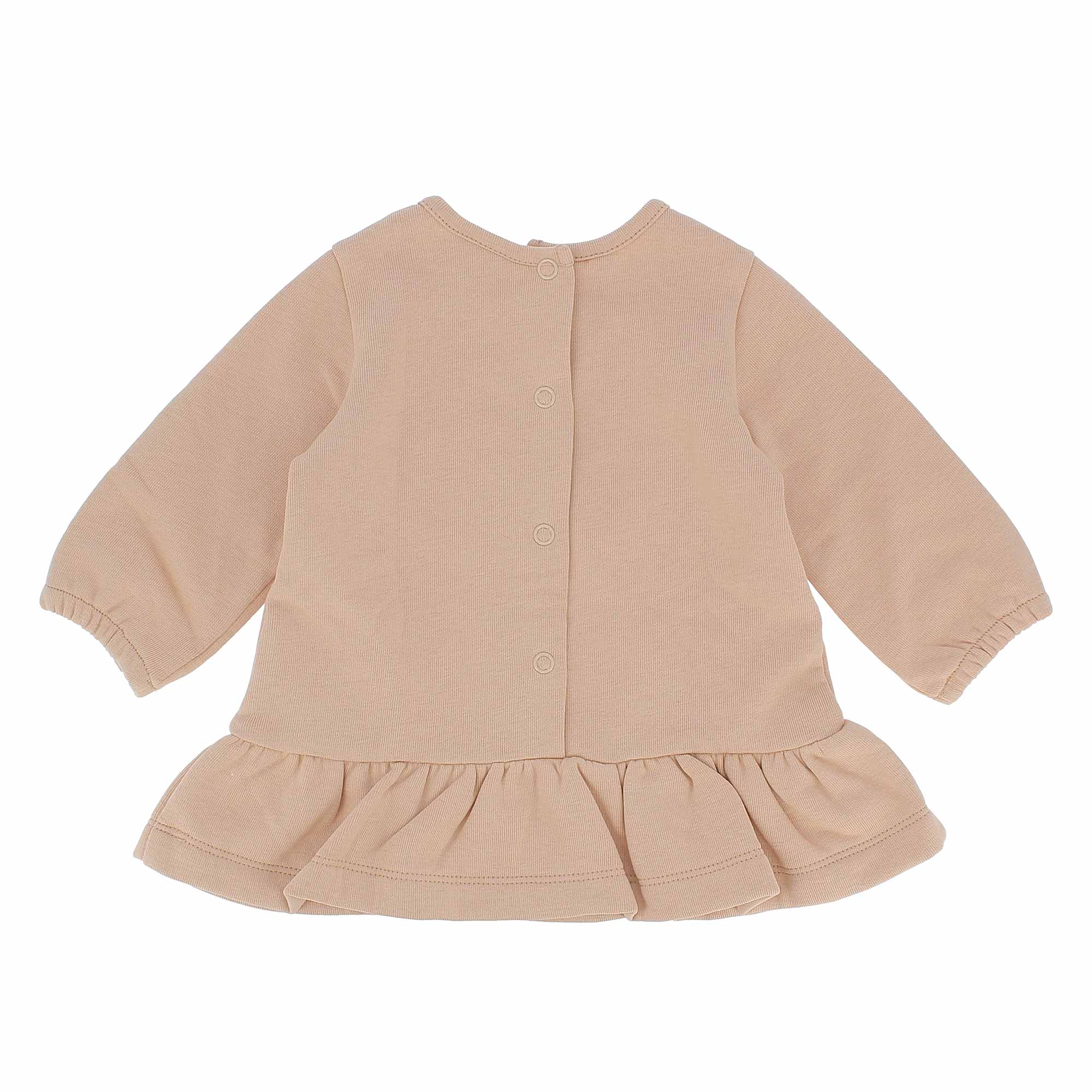 Vestito in felpa girocollo, a maniche lunghe con fondo arricciato. Chiusura sul retro con bottoncini automatici. Stampa sul davanti. Questo capo è ecosostenibile perché realizzato prevalentemente con fibre riciclate.