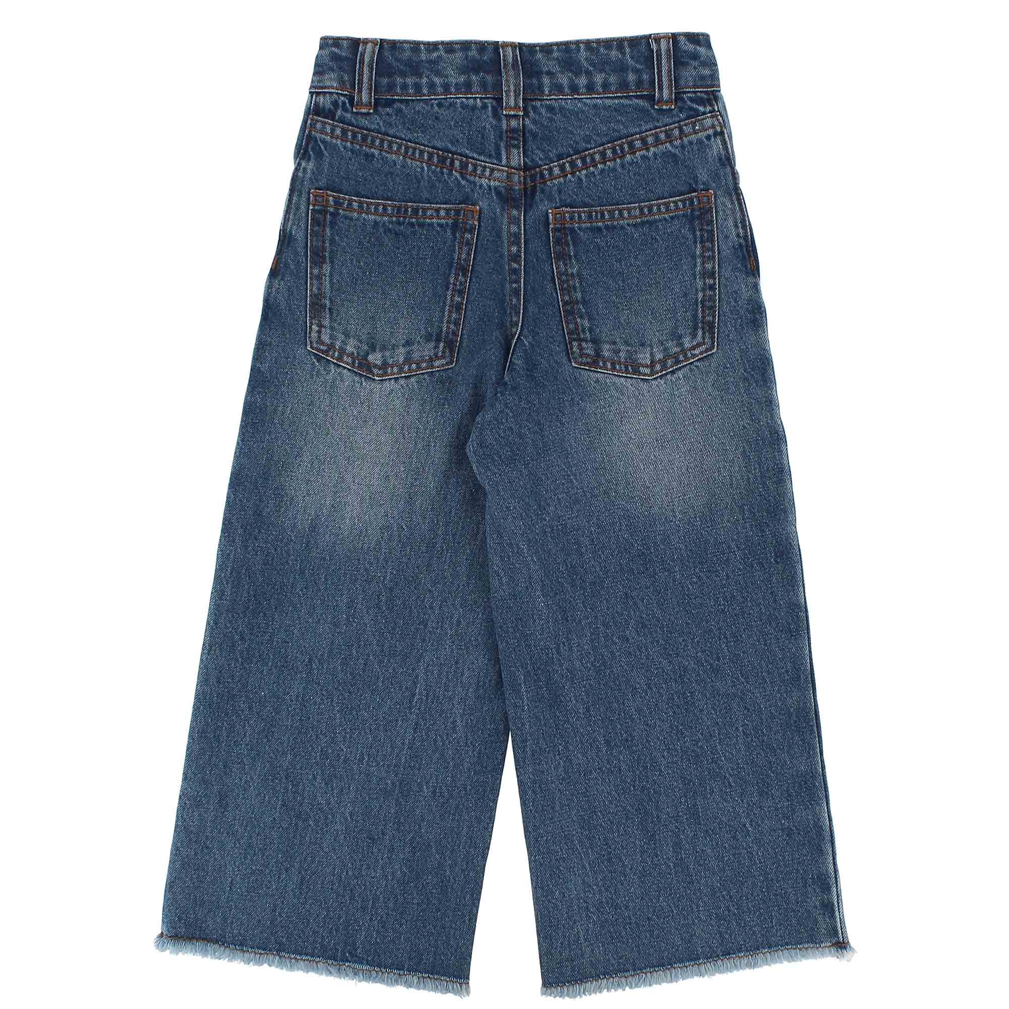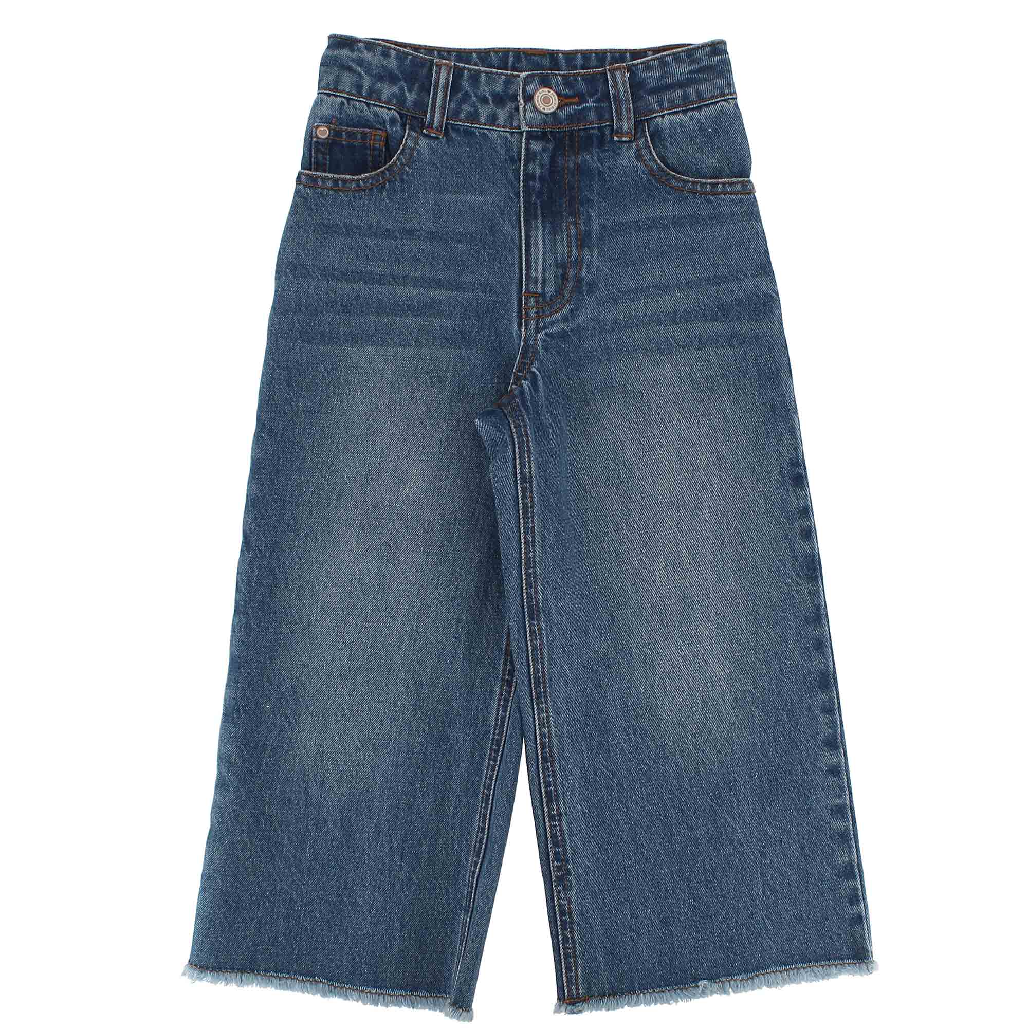 Jeans wide leg con vita regolabile all'interno. Chiusura con zip e bottone in metallo. Cinque tasche e orlo fondo a vivo.