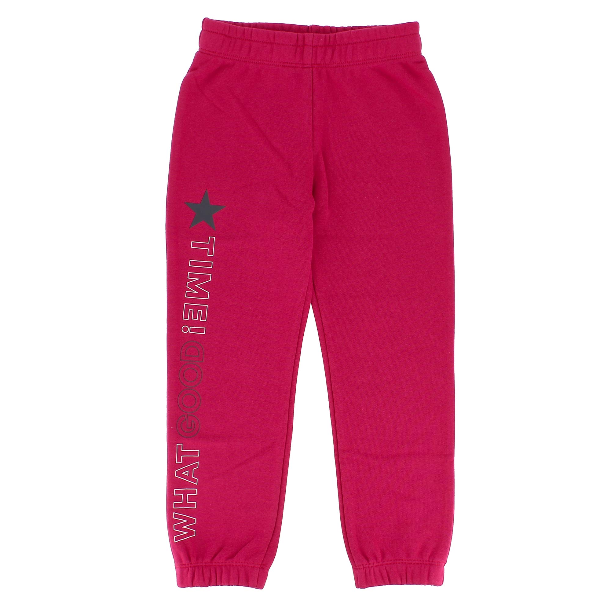 Pantalone in felpa con vita elasticizzata. Stampa con scritte e fondo con elastico.