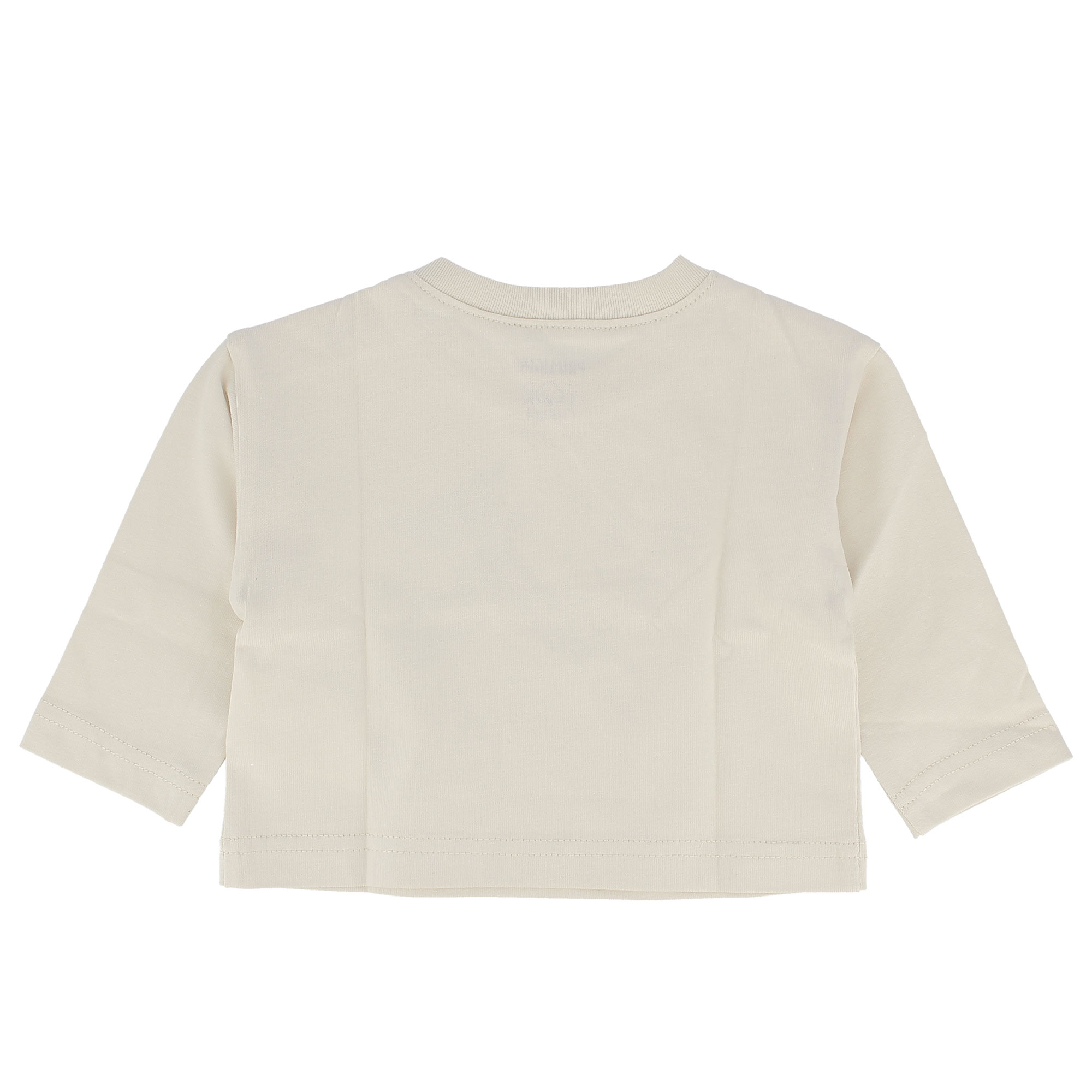 Maglietta in jersey girocollo a maniche lunghe. Chiusura con bottoni automatici sulla spalla. Stampa sul davanti. Questo capo è ecosostenibile perché realizzato prevalentemente con cotone organico.