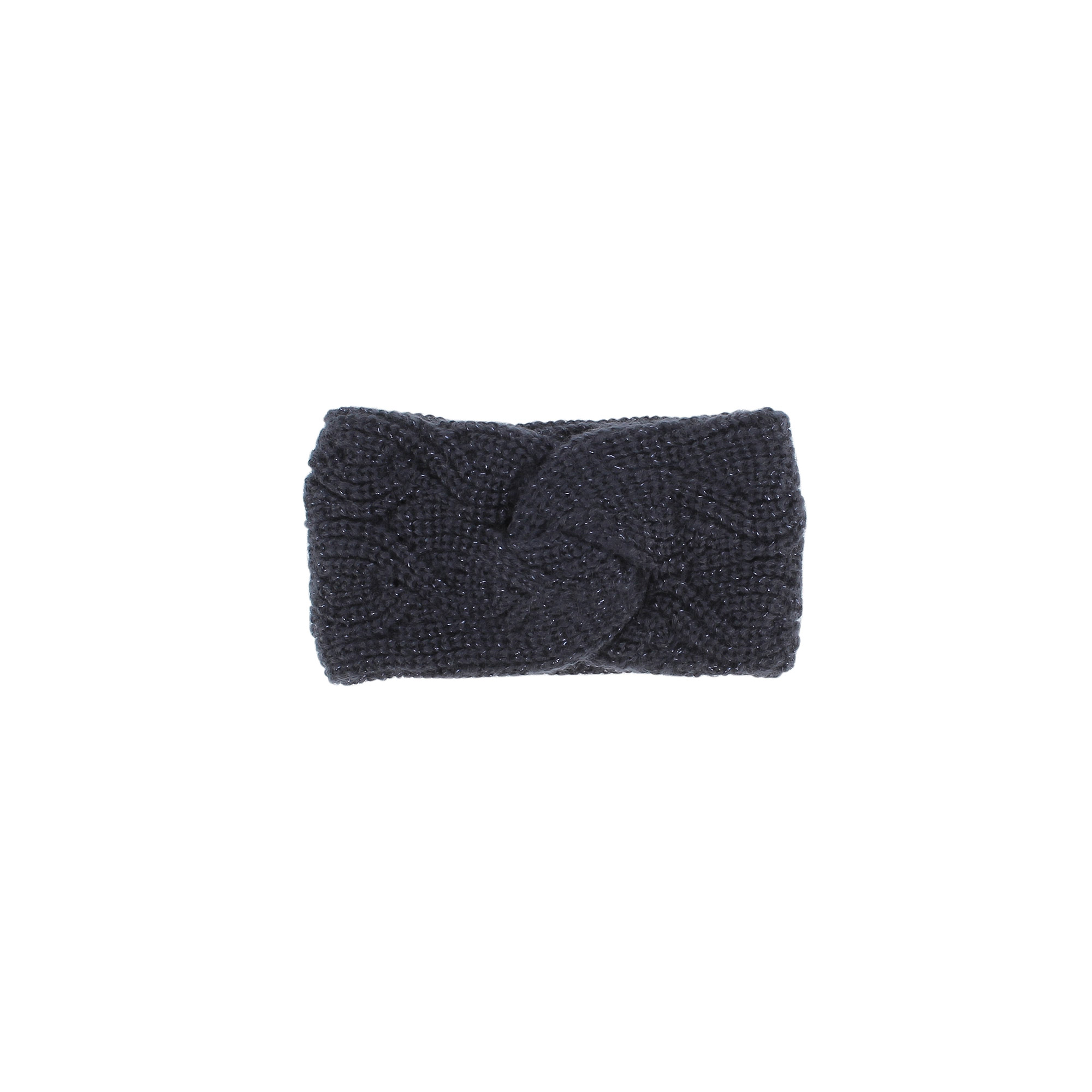 Fascia per capelli in morbida maglia con filato lurex, con incrocio sul davanti.