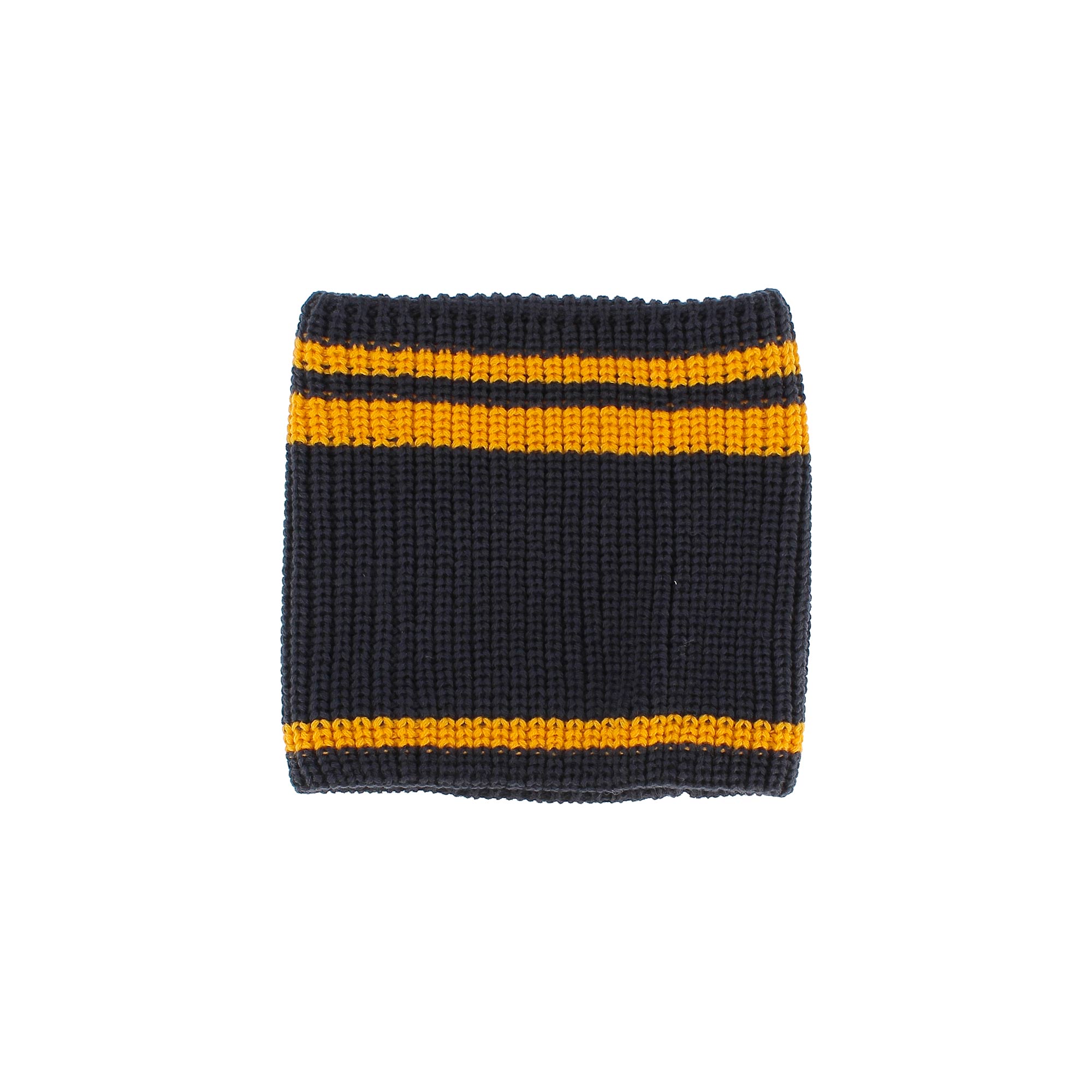 Scaldacollo in morbida maglia con motivo a righe. Fodera interna in pile.