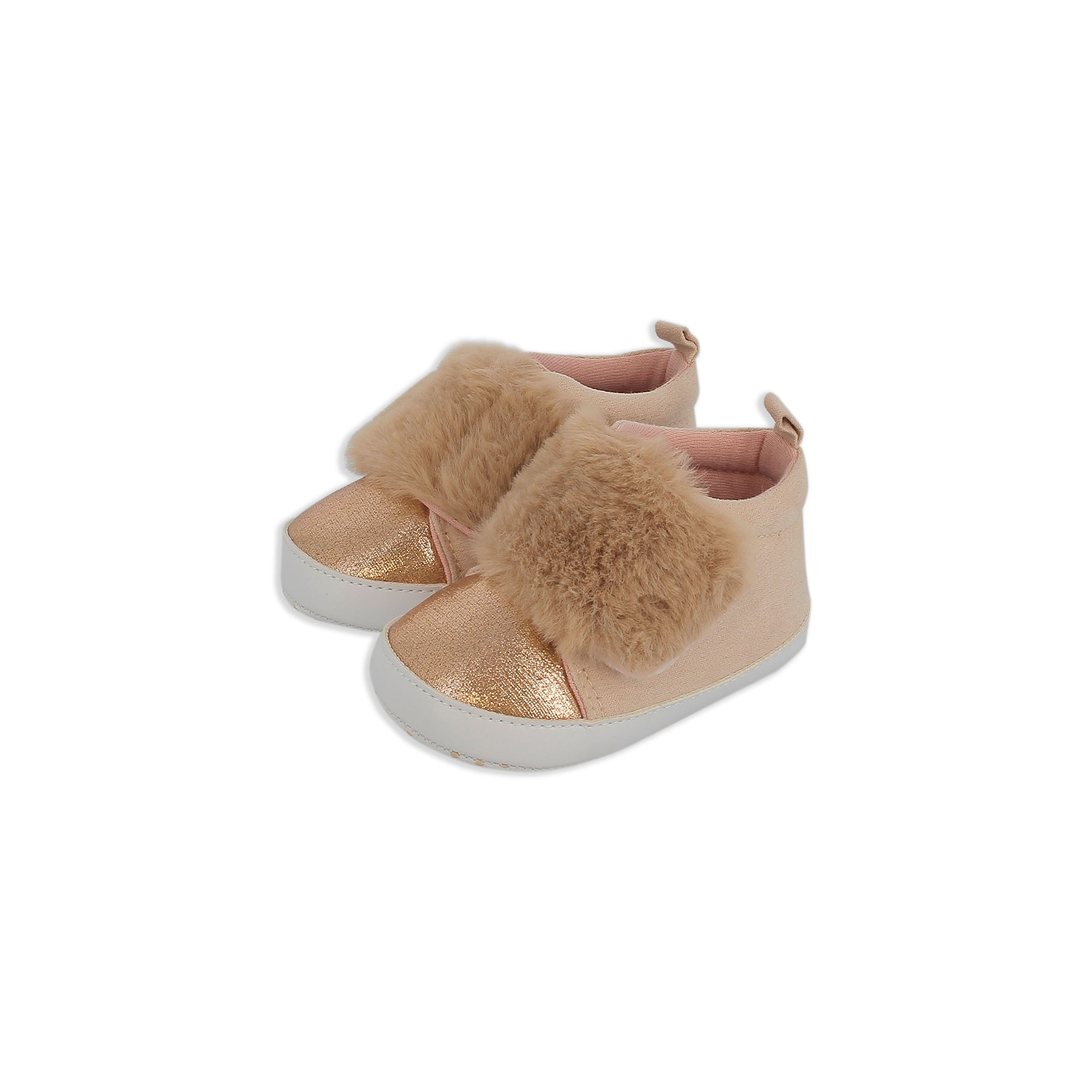 Sneaker newborn con punta laminata, velcro e ecopelliccia.
