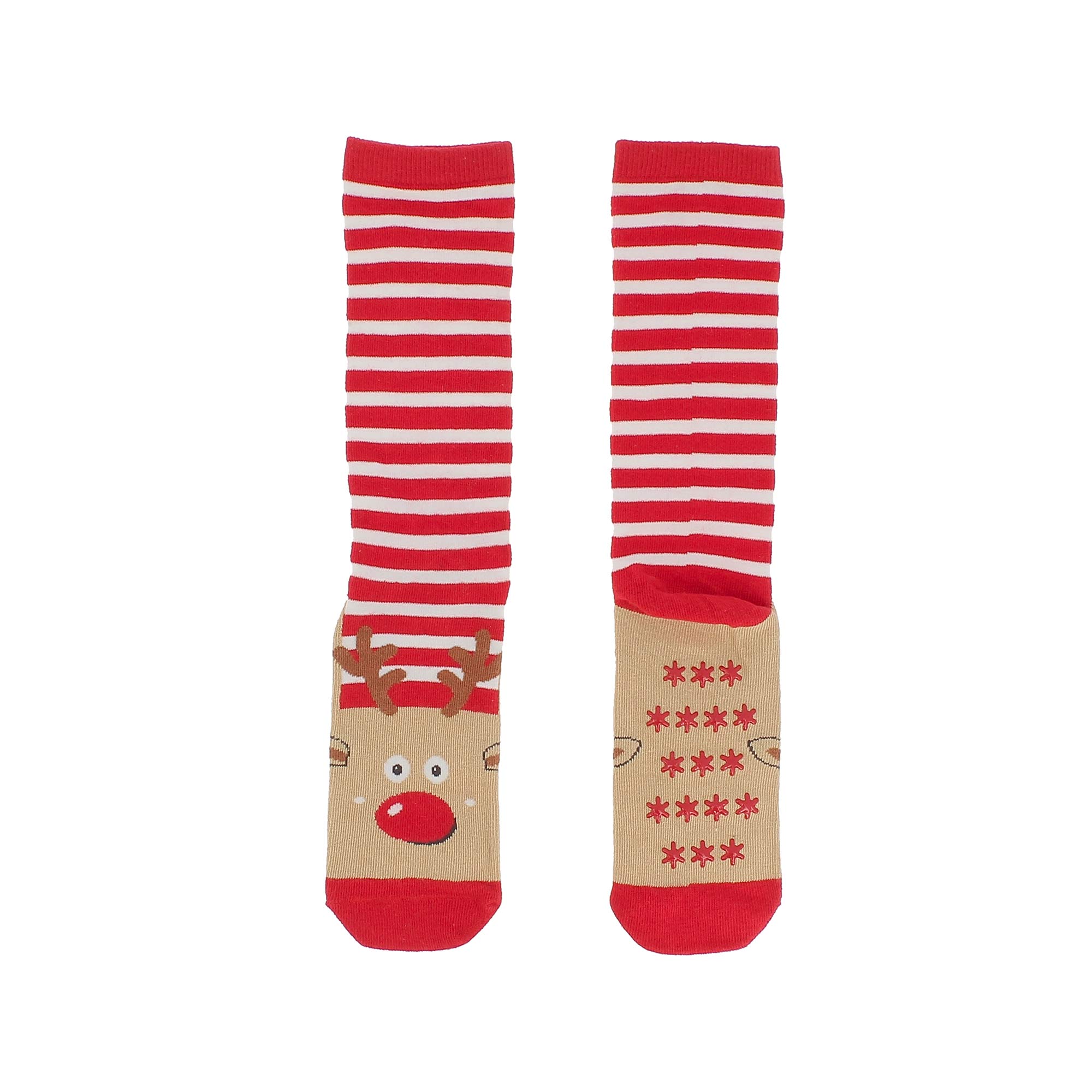 Calzini antiscivolo a righe con disegni a tema natalizio. Bordo elasticizzato.