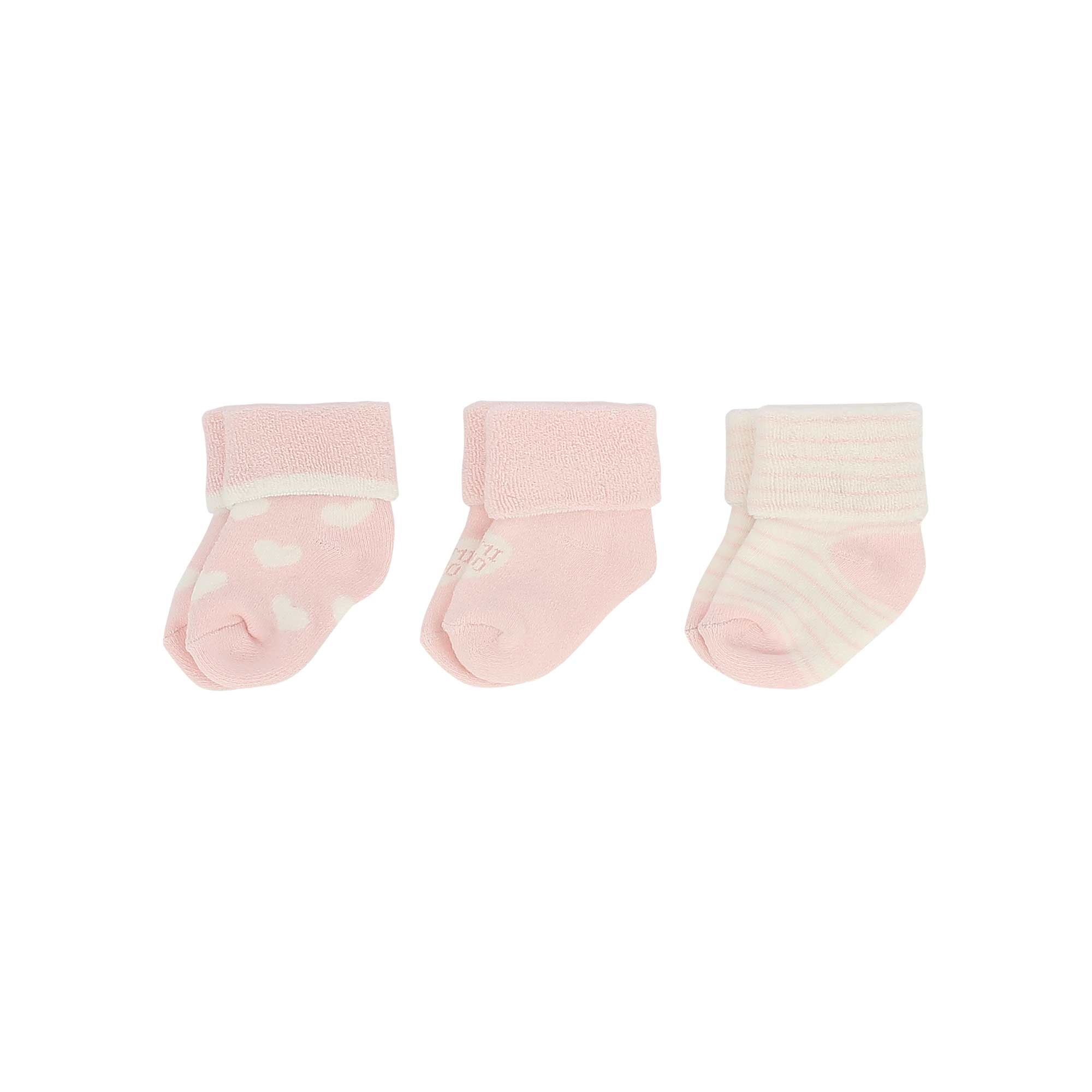 Confezione composta da tre paia di calzini corti newborn in spugna. Bordi con risvolto.