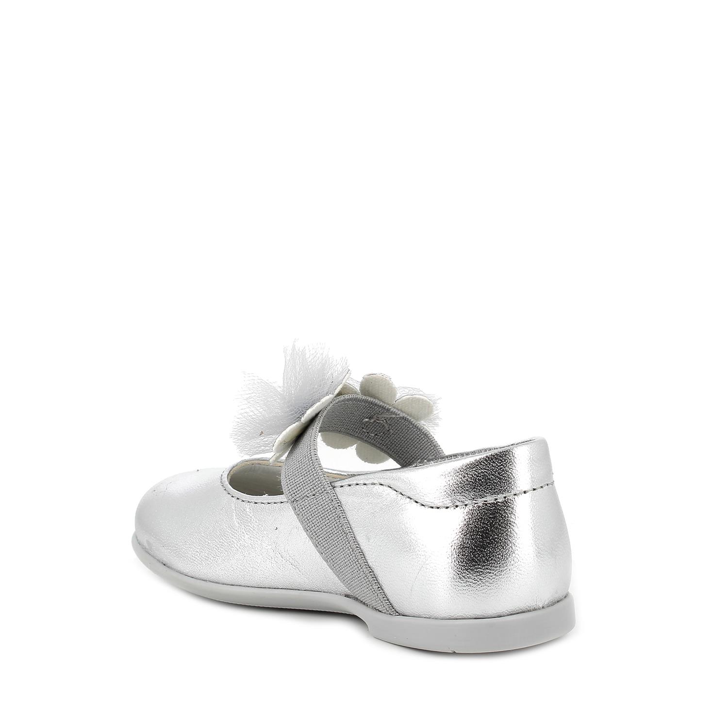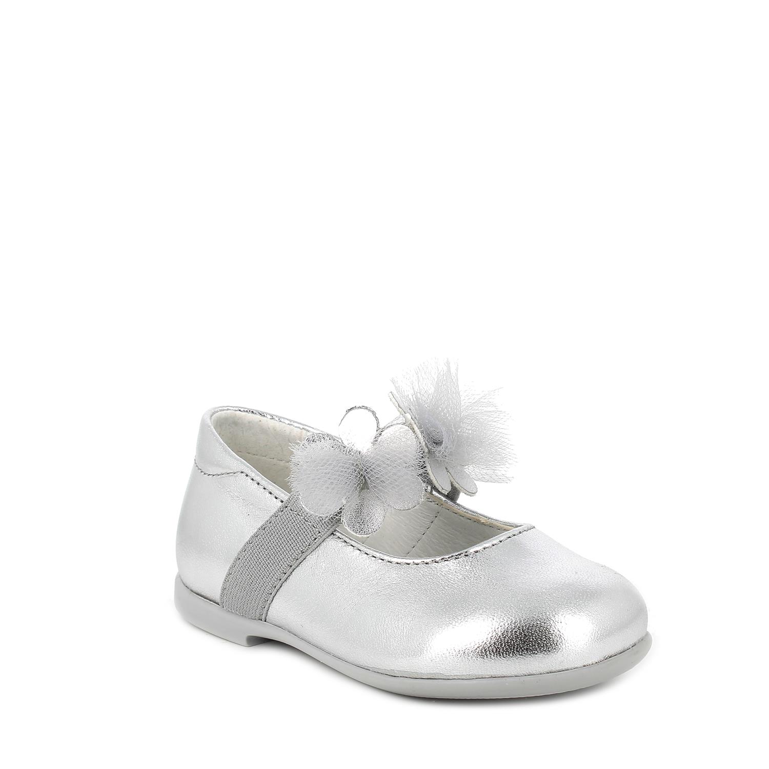 Queste ballerine primi passi possono essere facilmente immaginate sotto uno svolazzante abitino. Le decorazioni sono raffinate e femminili. Sarà facile farle calzare alle bimbe grazie all'elastico che le trattiene sul piede. Per rendere più gradevole indossarle anche per molte ore, è stata prevista una leggera imbottitura posteriore. Il sottopiede è rivestito in pelle e la suola, con piccolo tacco, è morbida e flessibile.