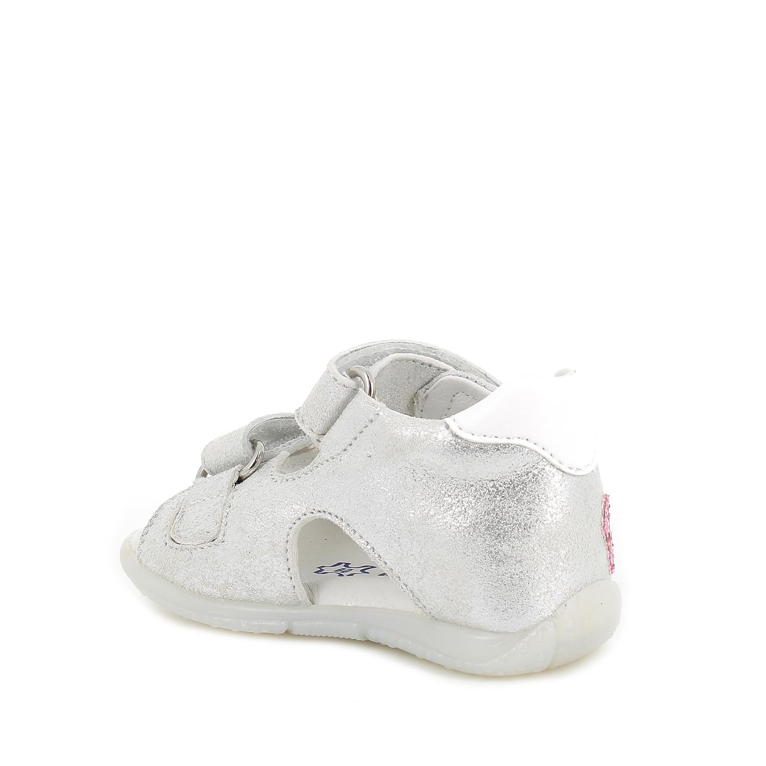 Sandalo in pelle da bambina bianco-argento