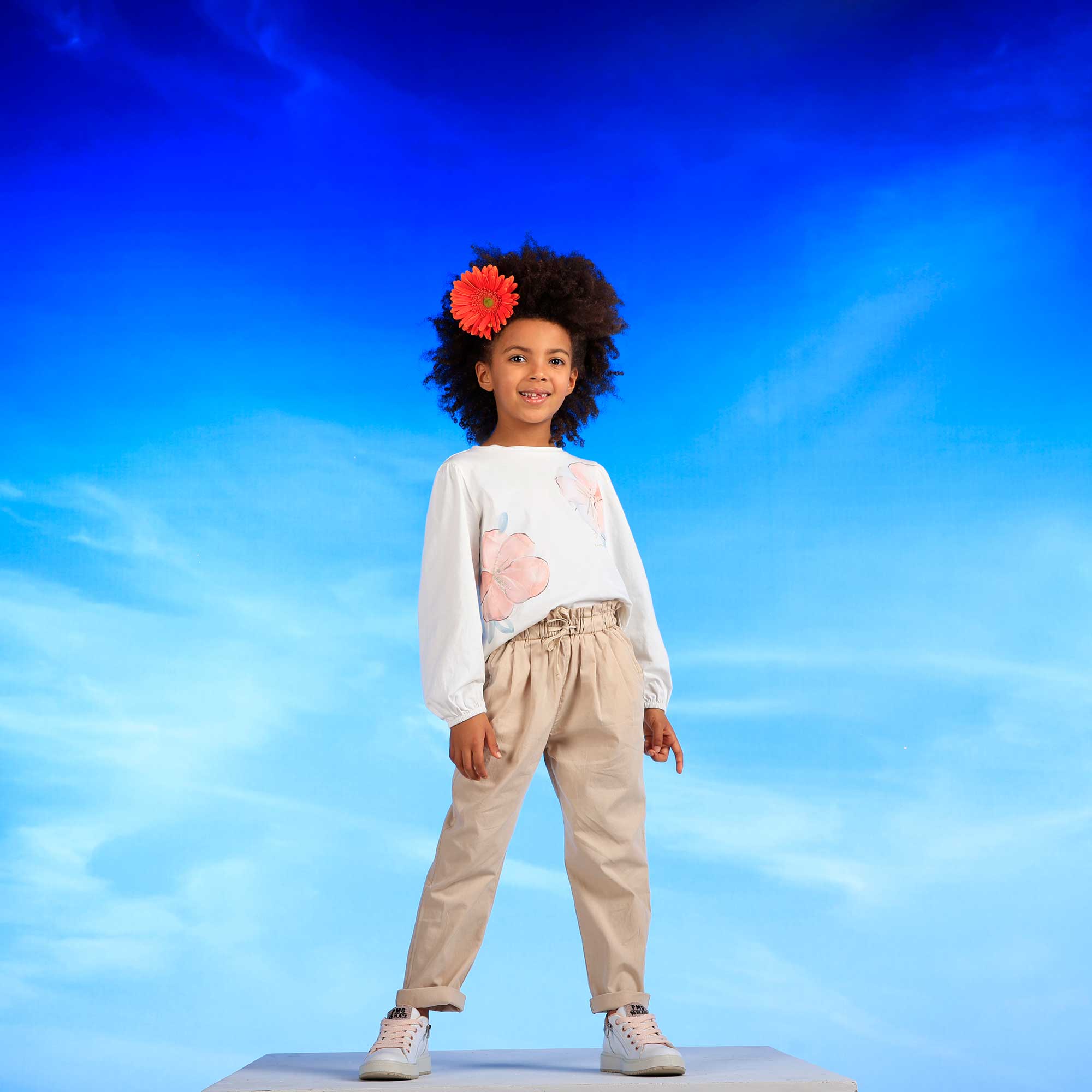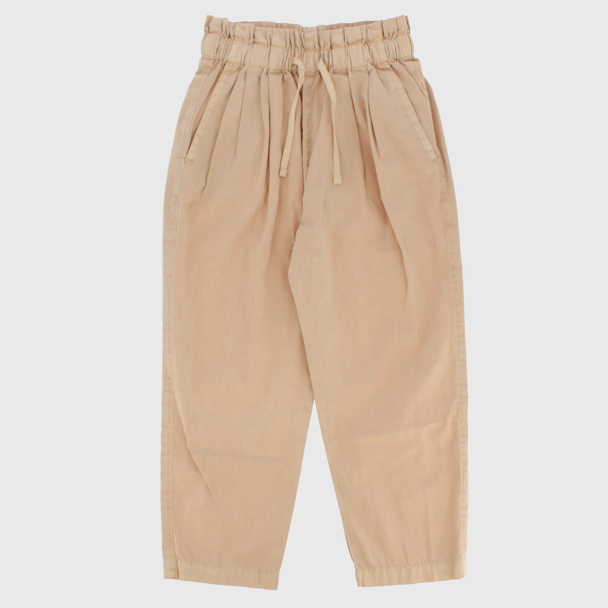 Pantalone balloon in popeline effetto "used" con vita elasticizzata e lacci. Tasche alla francese.