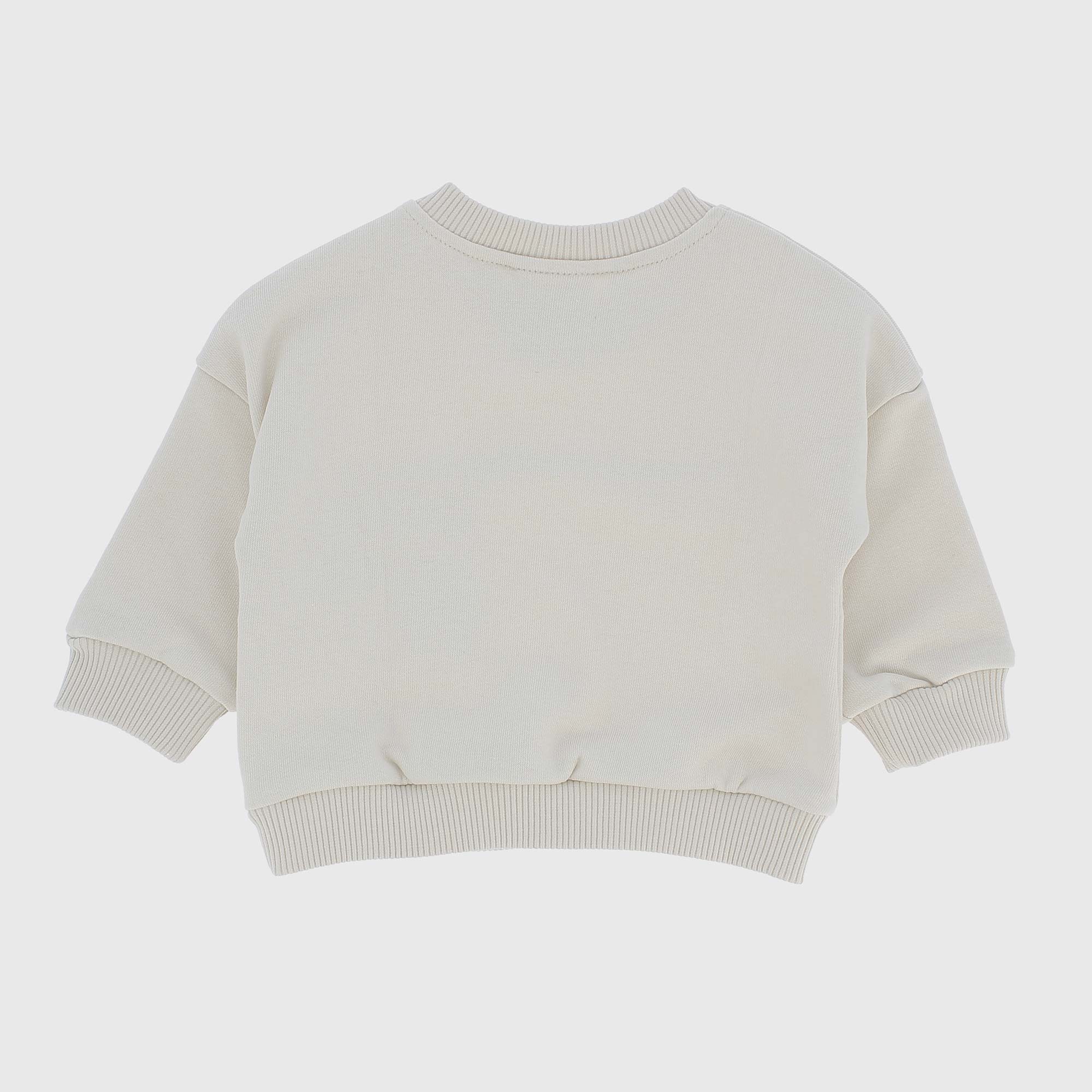 Felpa girocollo a maniche lunghe, con taschino. Chiusura con bottoncini sulla spalla. Questo capo è ecosostenibile perché realizzato prevalentemente con fibre riciclate.