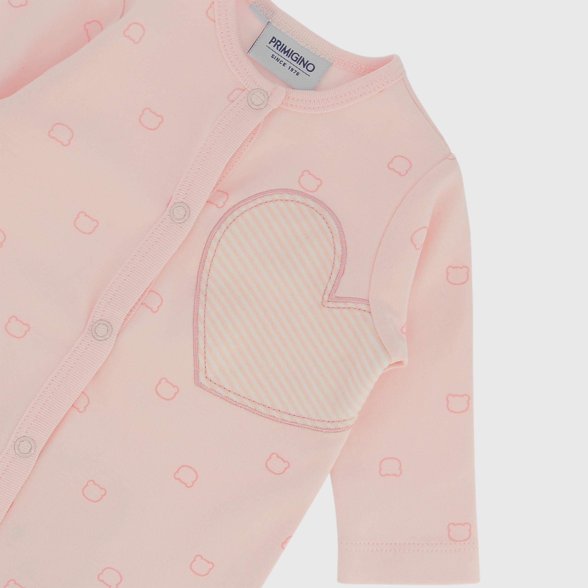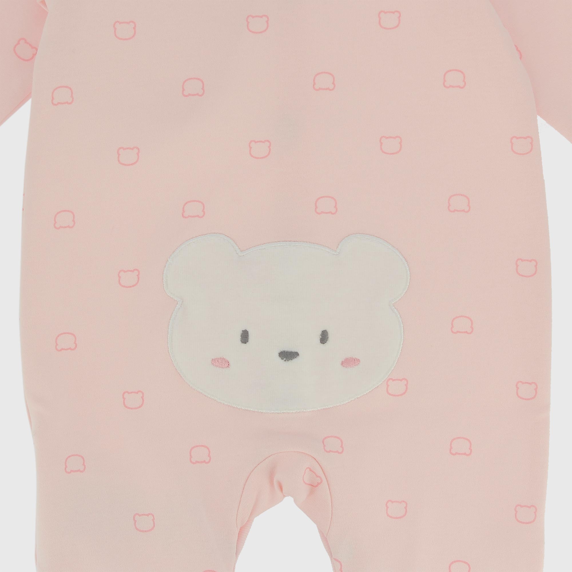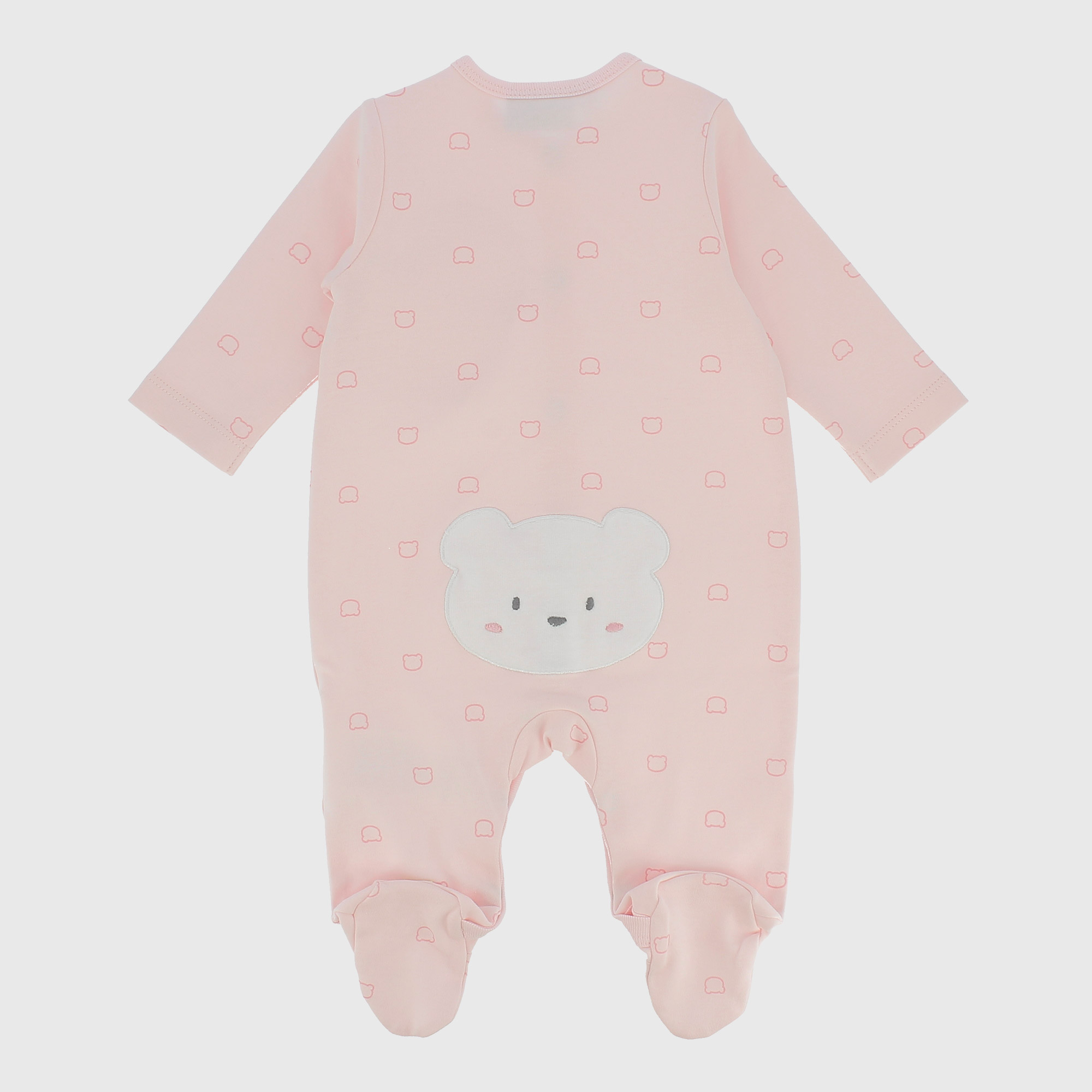 Tutina in cotone con collo rotondo, a maniche lunghe. Chiusura frontale con bottoni automatici. Patch Orsetto e cuoricino in ciniglia.