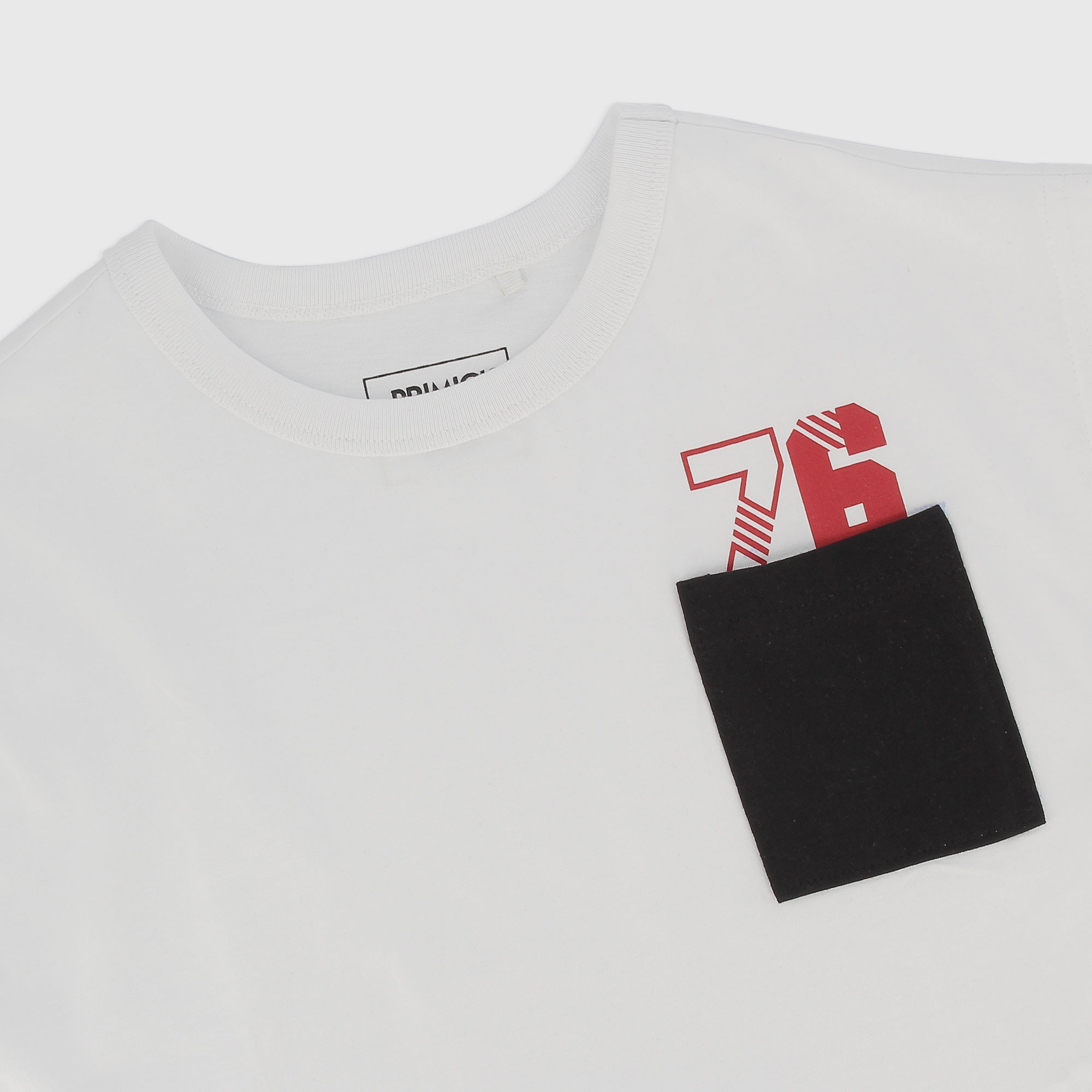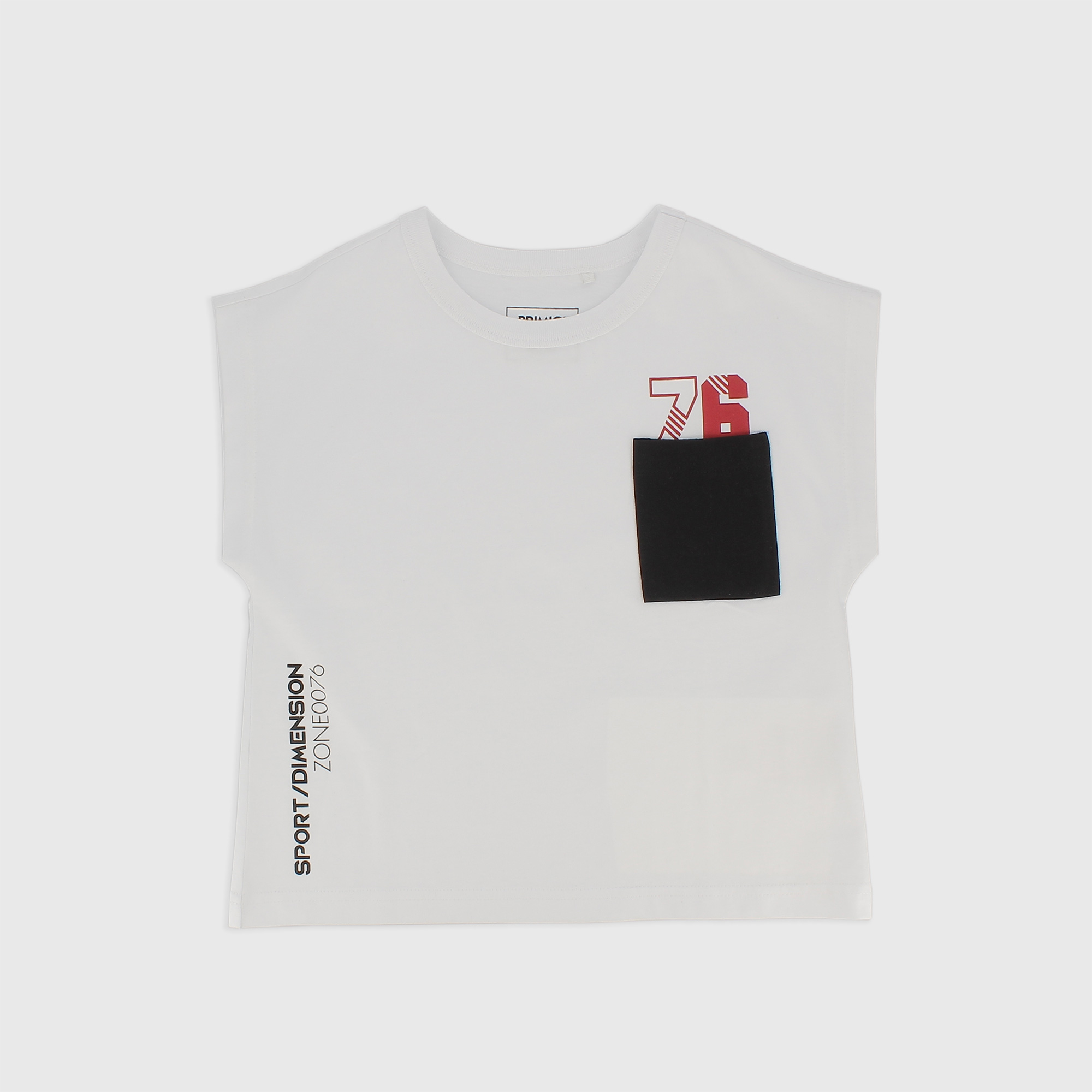 Canotta oversize in jersey girocollo. Taschino a contrasto e stampa frontale.