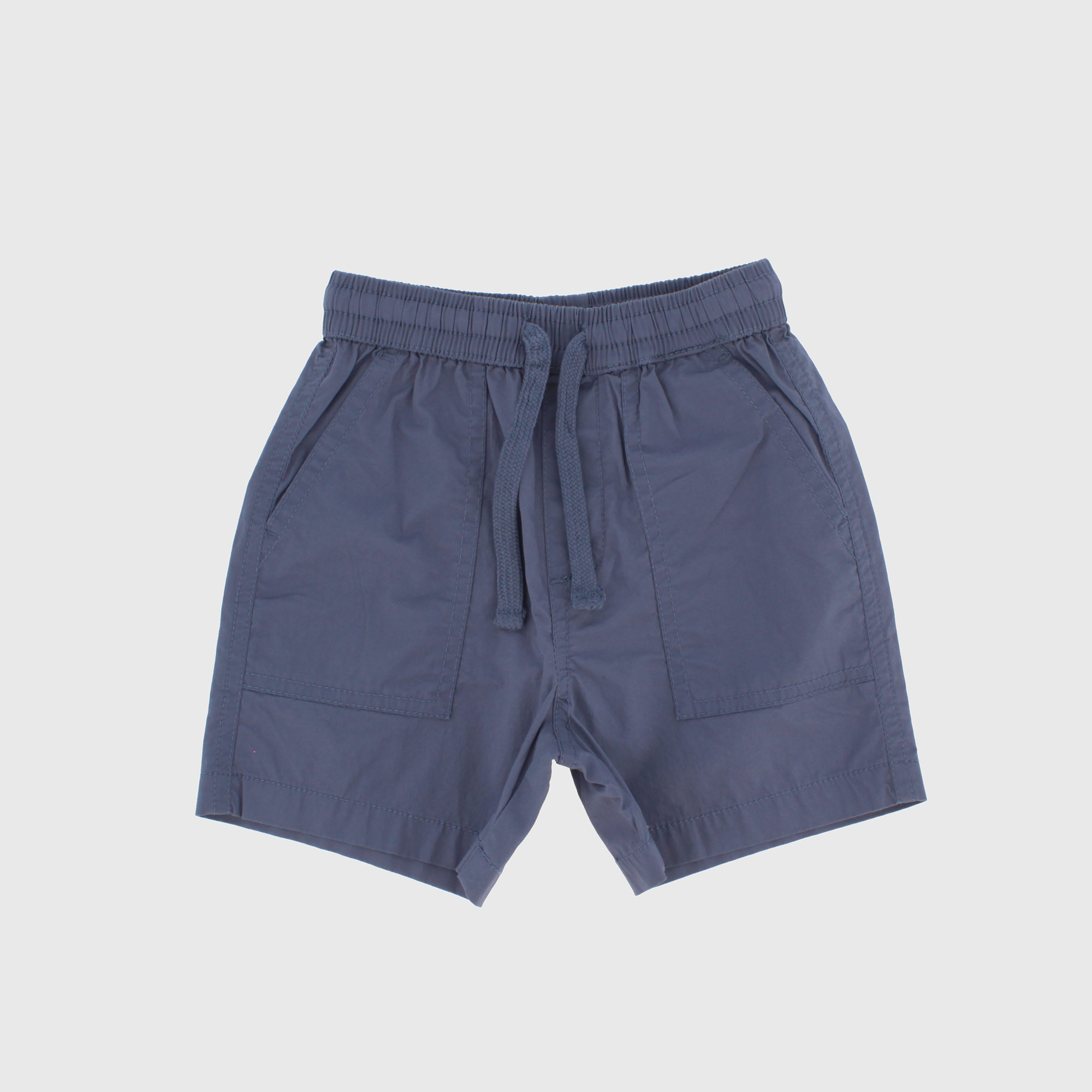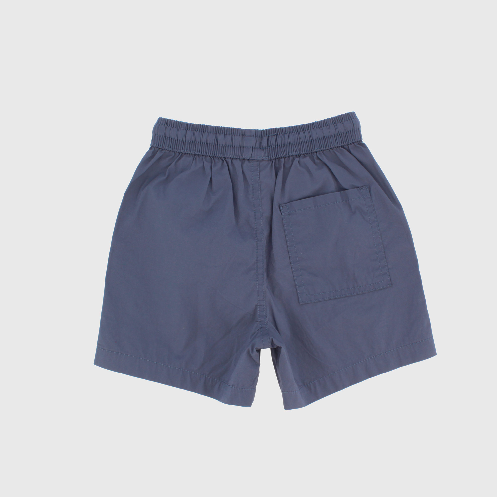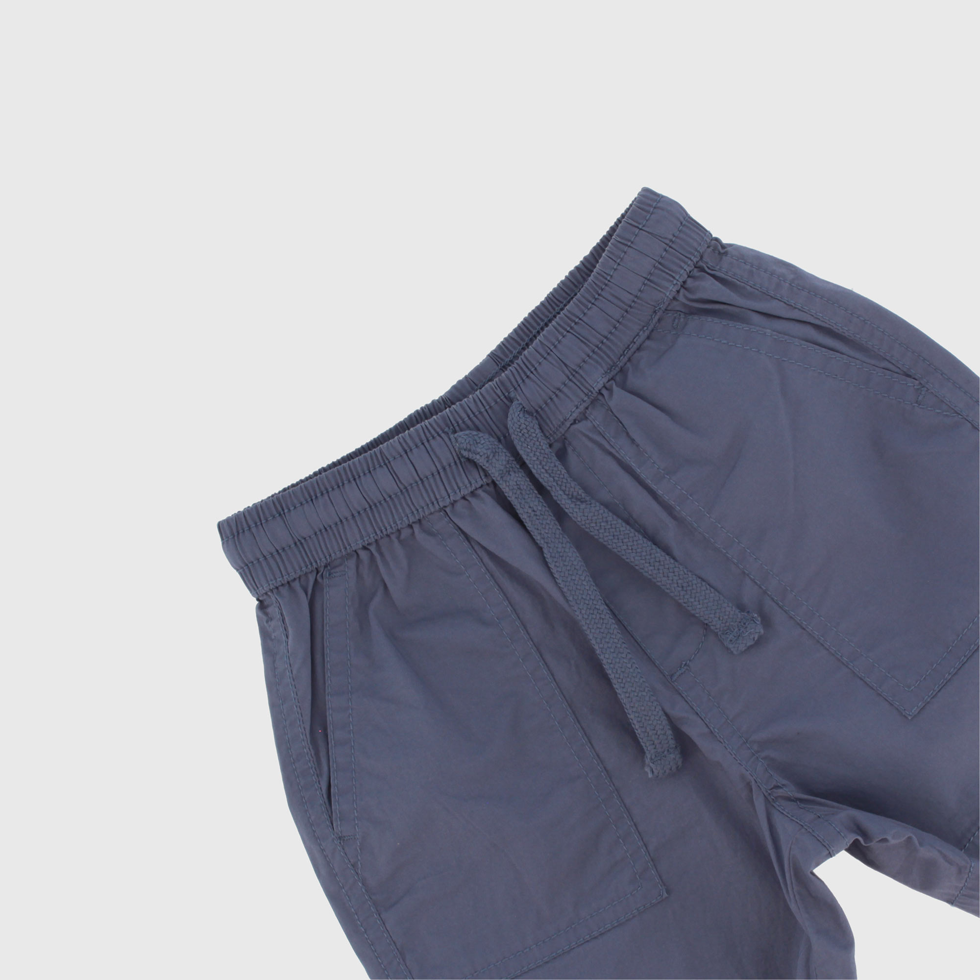 Bermuda in popeline con vita elasticizzata e lacci frontali. Tasche a toppa sul retro.
