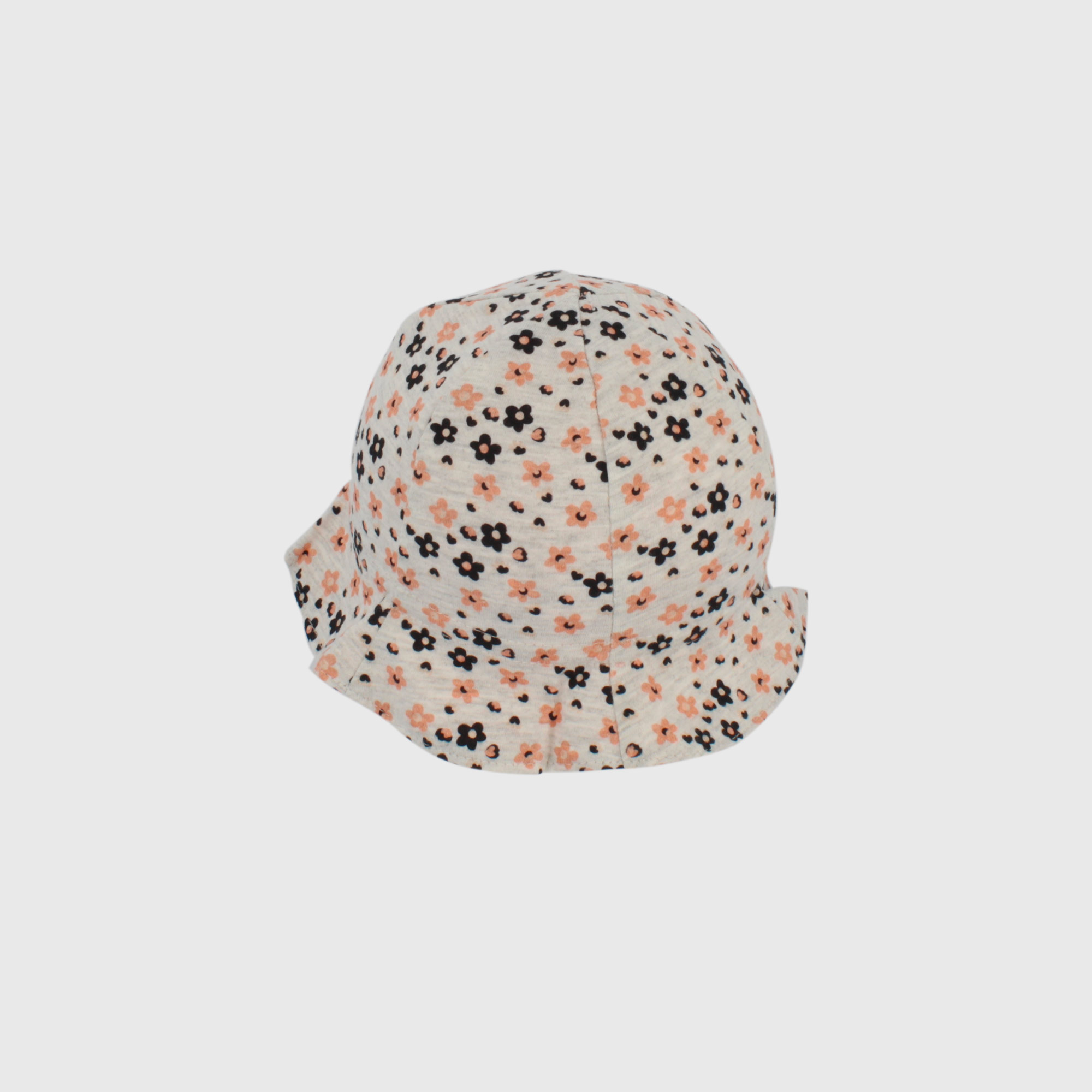 Cappello double-face: da un lato con fiorellini, dall'altro tinta unita.