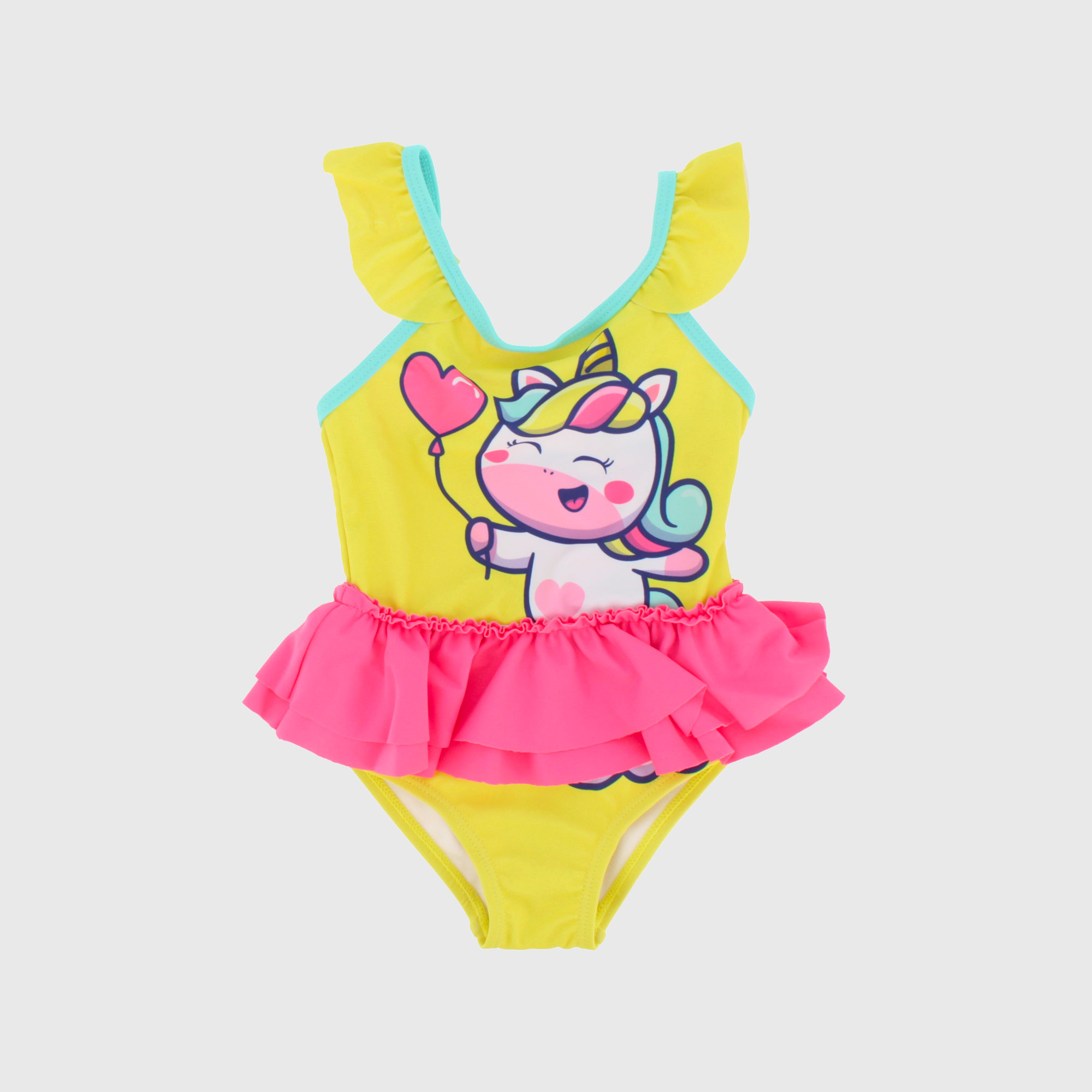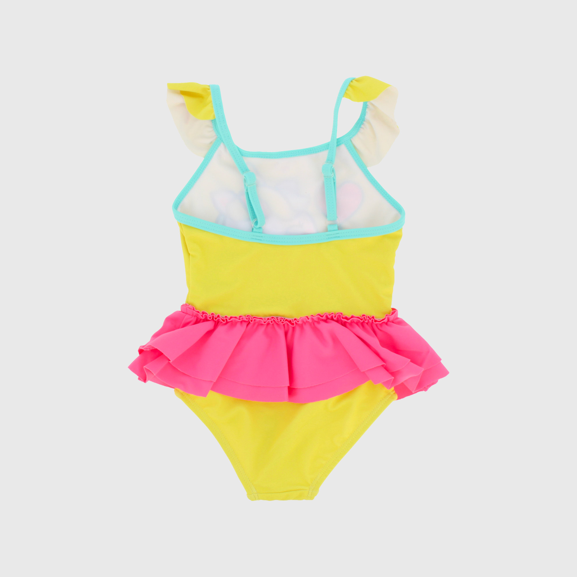 Costume intero con stampa e con volants sul davanti e sulle bretelline.