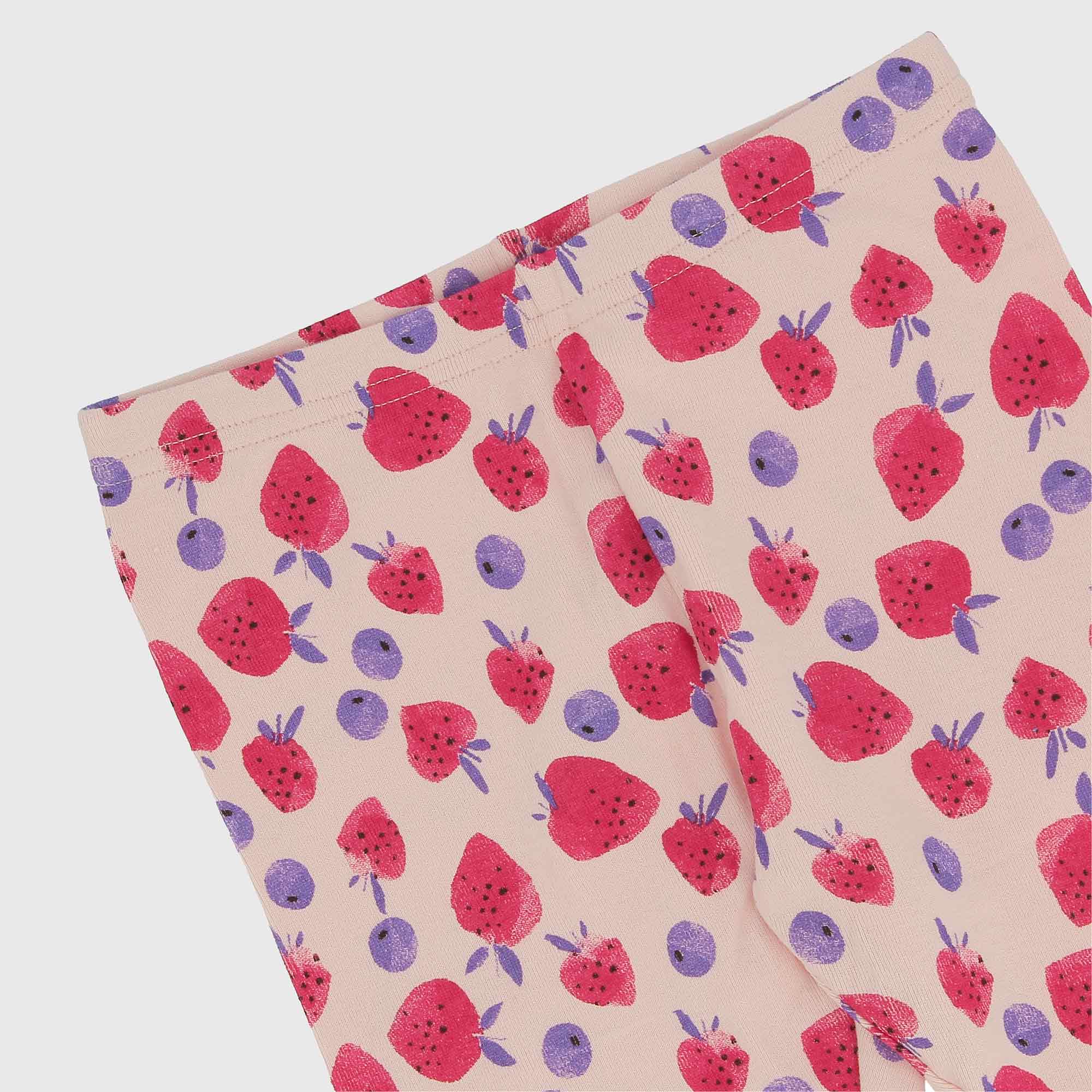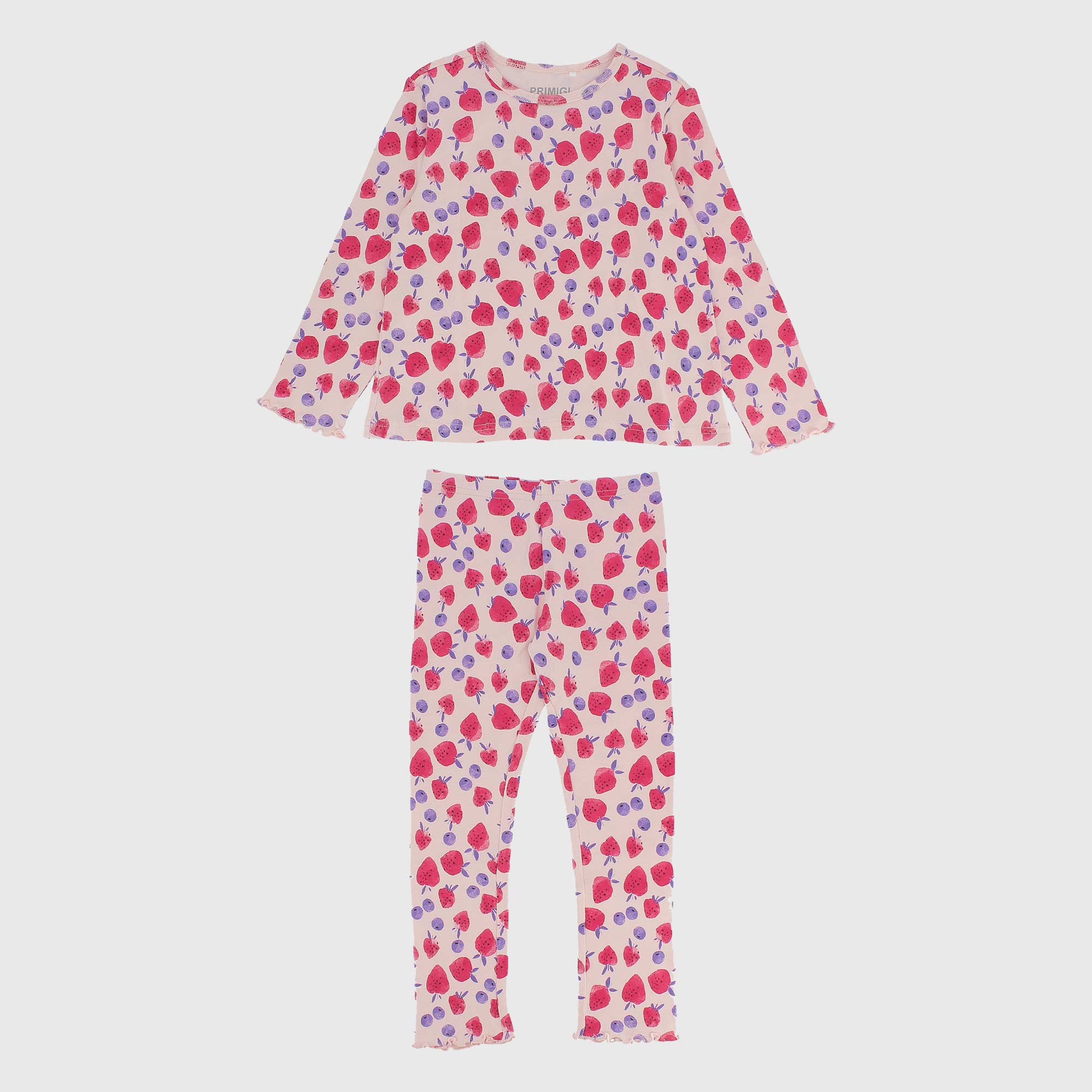 Completo pigiama in costina. Maglia girocollo a maniche lunghe. Leggings con vita elasticizzata. Stampa all over.