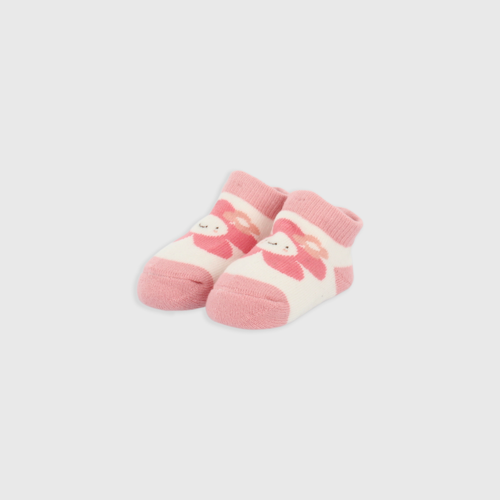 Calzini newborn con motivo fiore e gommini antiscivolo. Bordo elasticizzato.