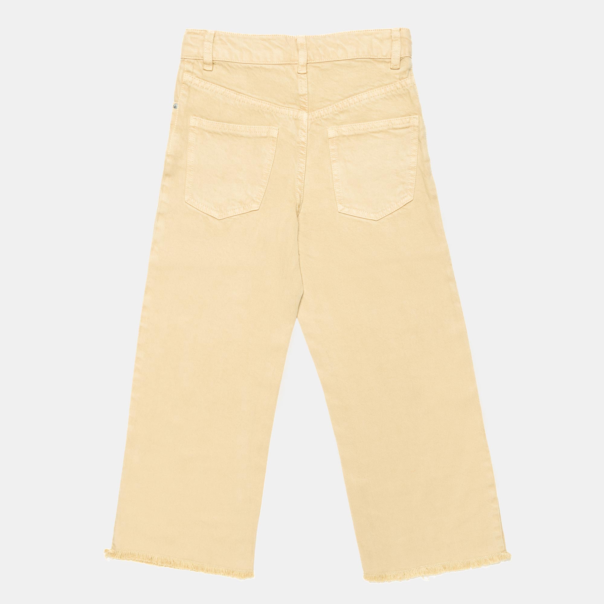 Pantalone wide leg in tela di cotone con vita regolabile all'interno. Chiusura con bottone e zip. Cinque tasche. Orlo sfrangiato.