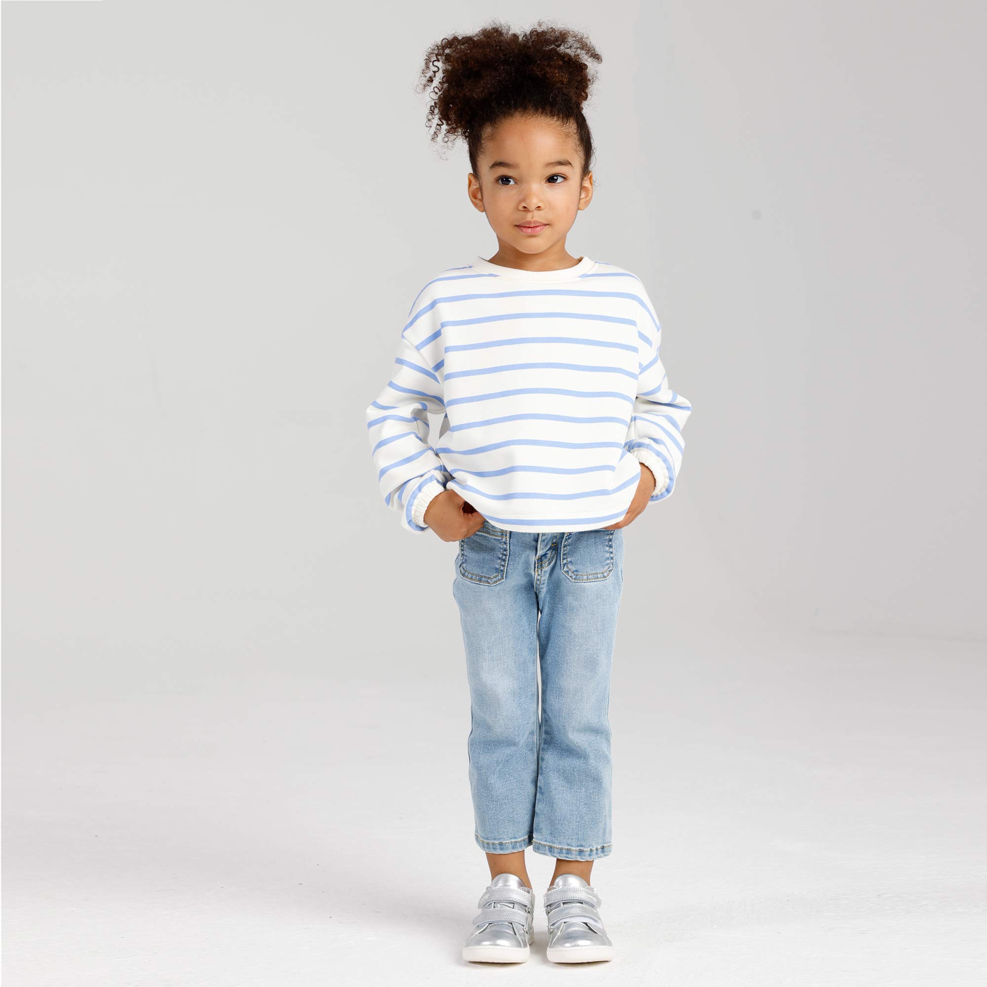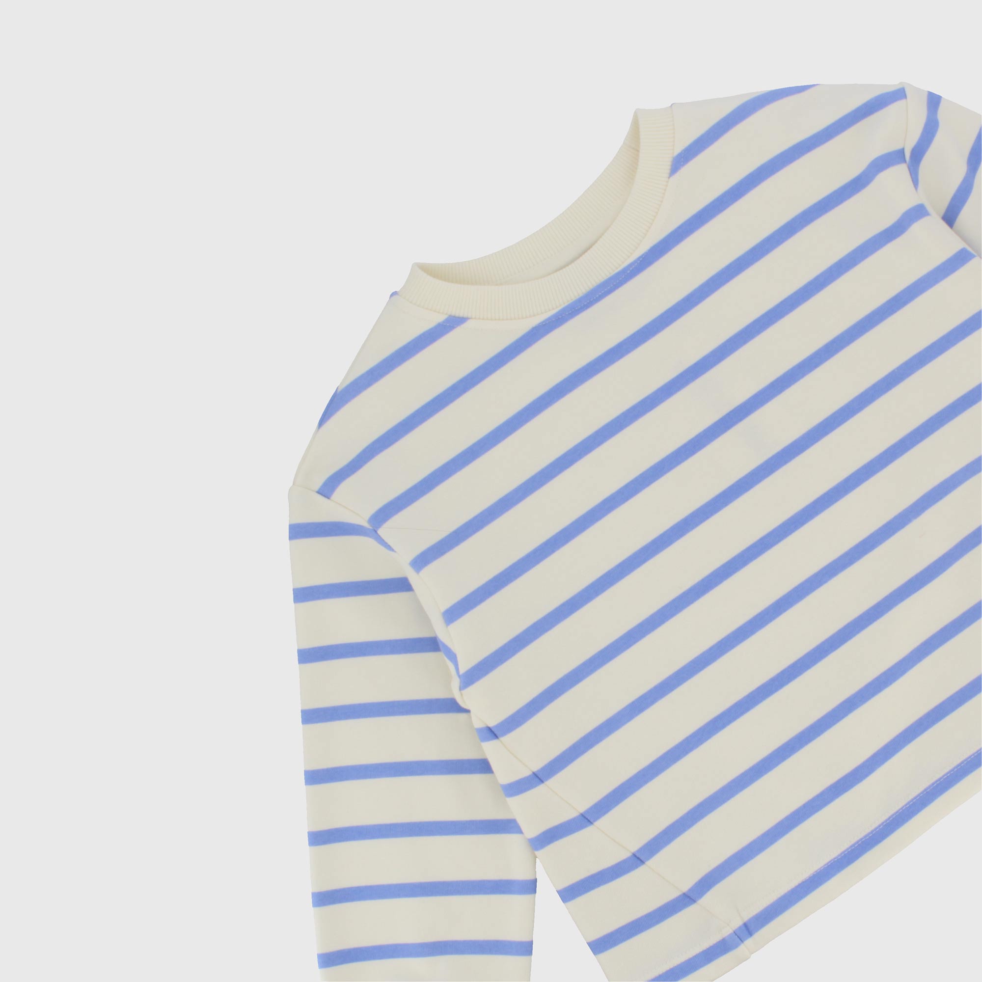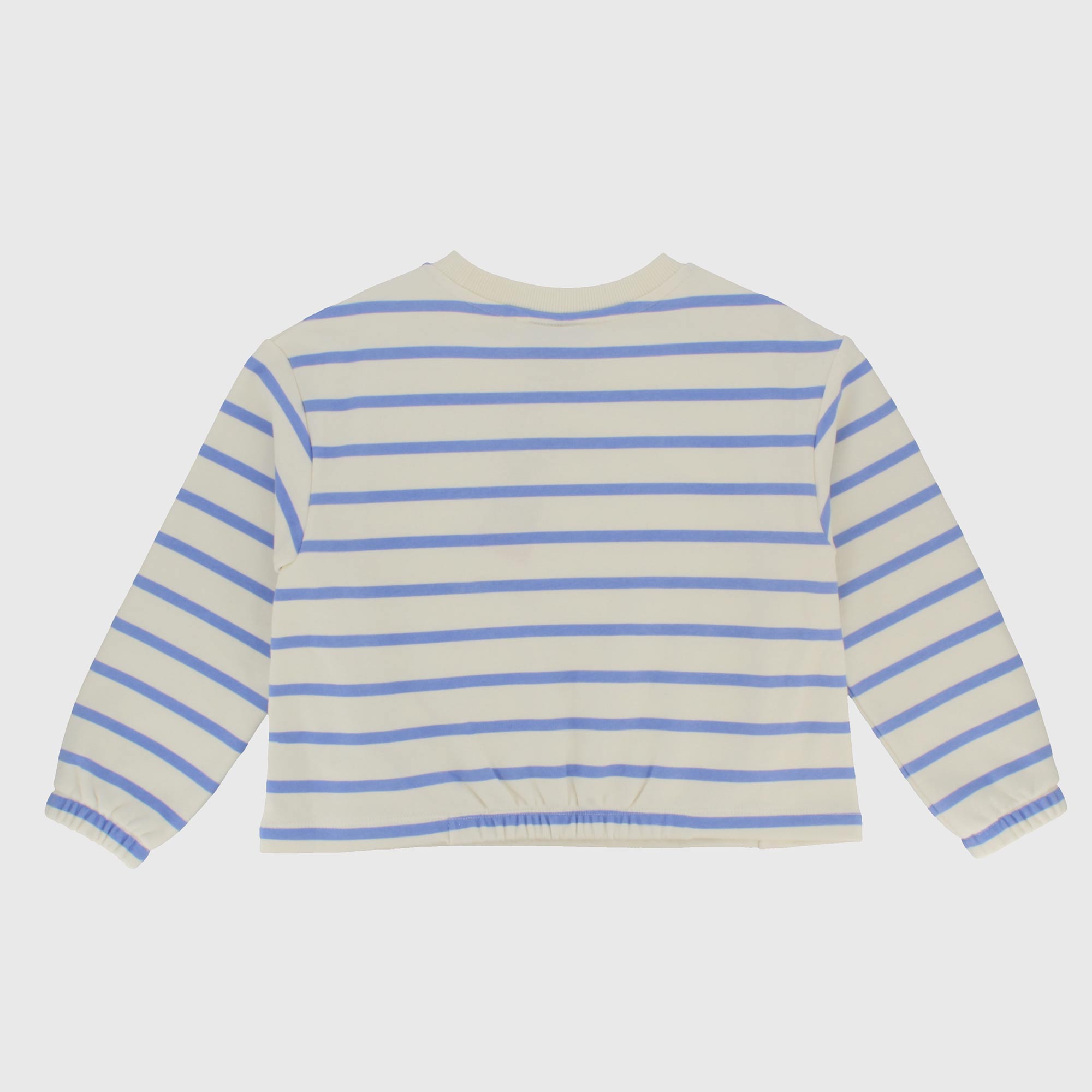 Felpa girocollo a maniche lunghe, con righe stampate. Elastico sul fondo posteriore e sui polsini. Collo in costina.