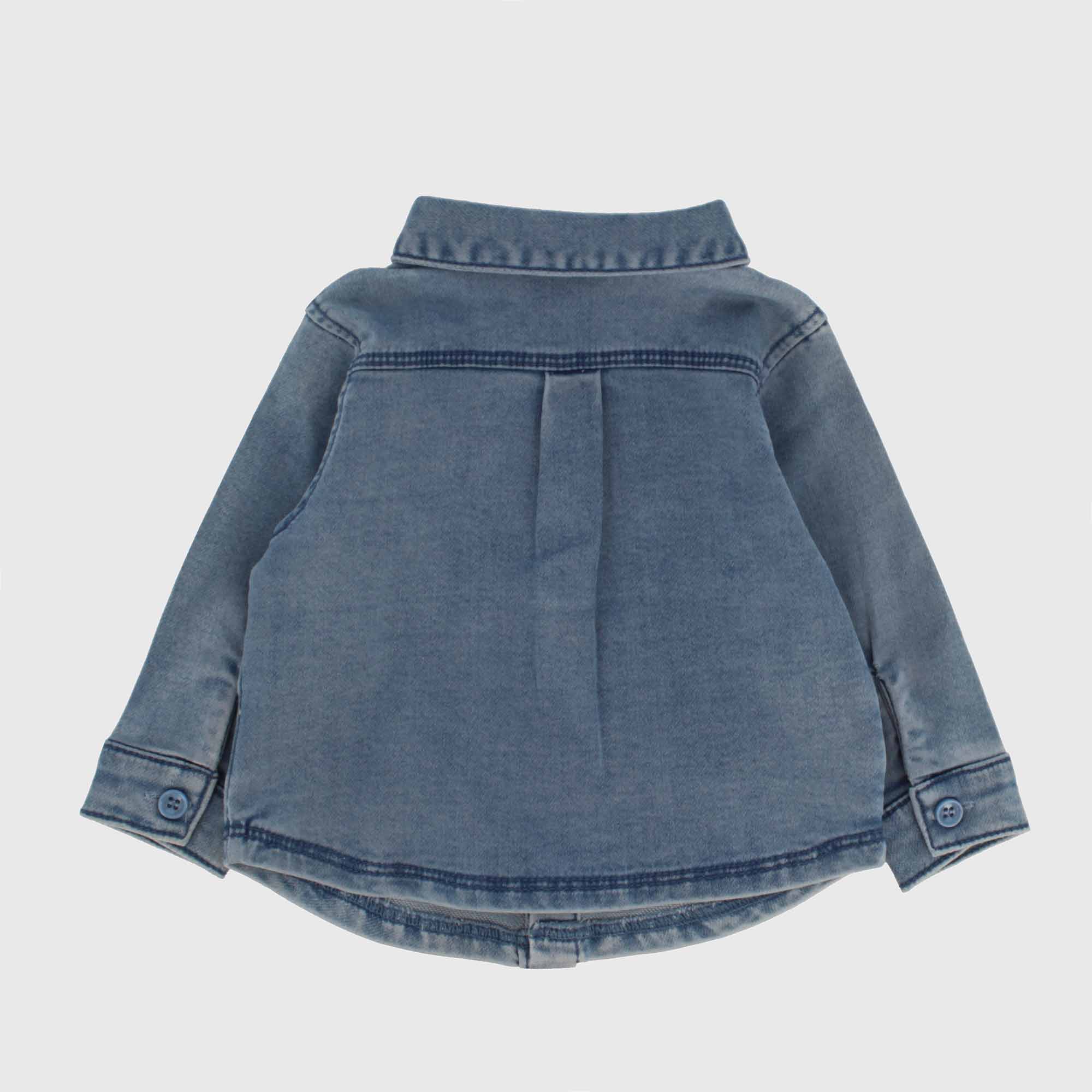 Camicia in jeans, a maniche lunghe. Chiusura con bottoni sul davanti. Taschina frontale con applicazione stampata.