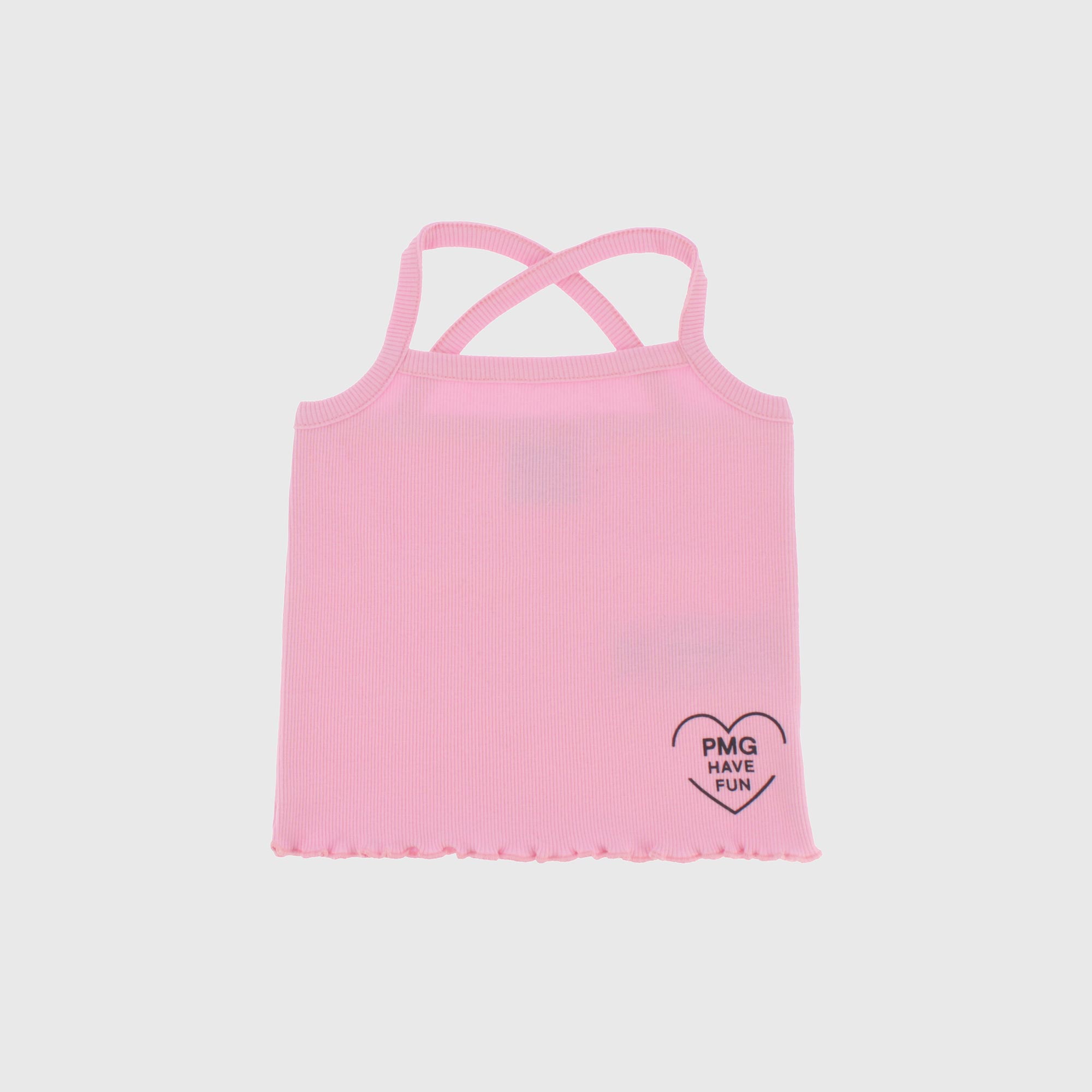 Canotta in costina con bretelline sottili. Stampa con logo. Fondo ondulato.