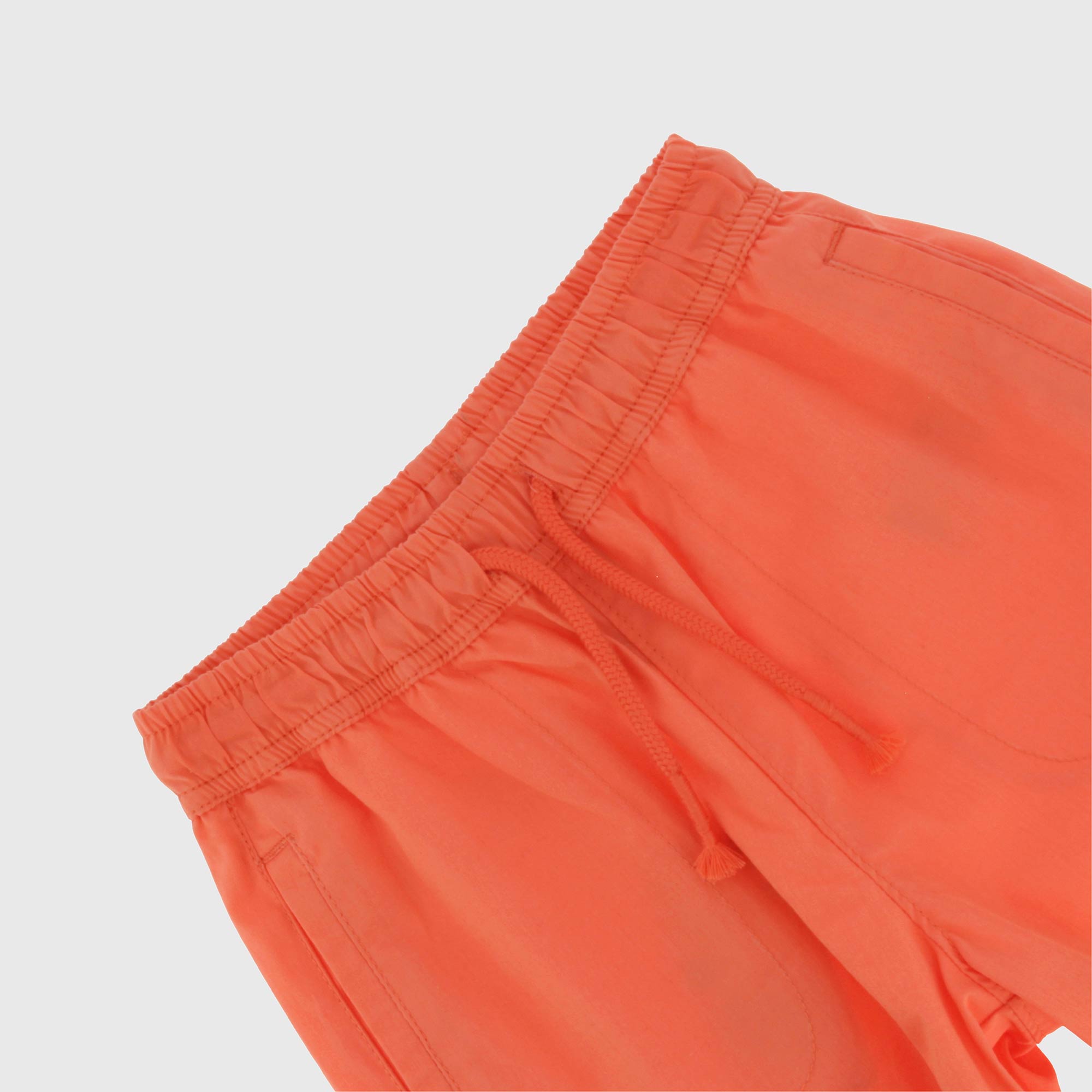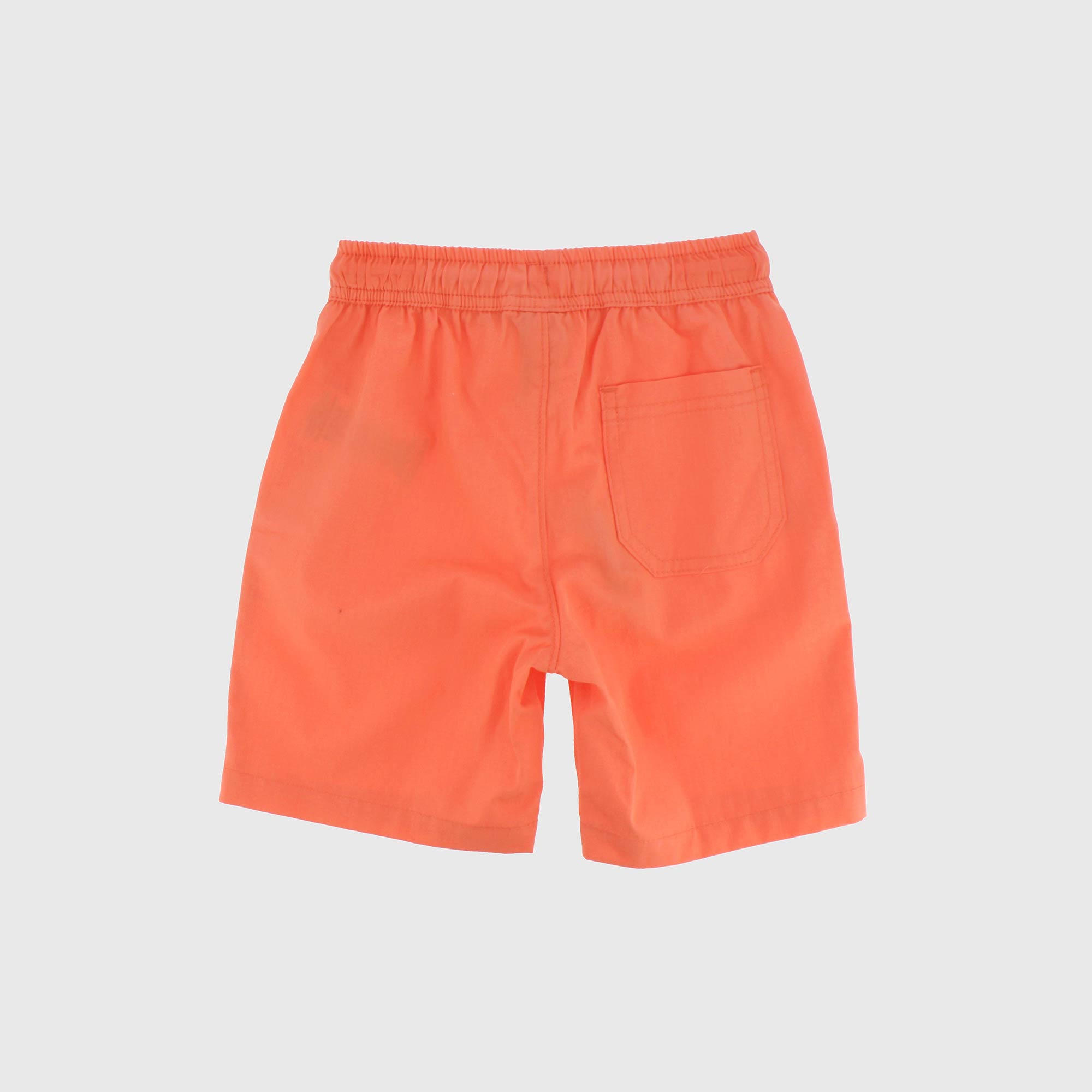 Bermuda in popeline con vita elasticizzata e lacci frontali. Tasche a scomparsa sul davanti e tasca a toppa.