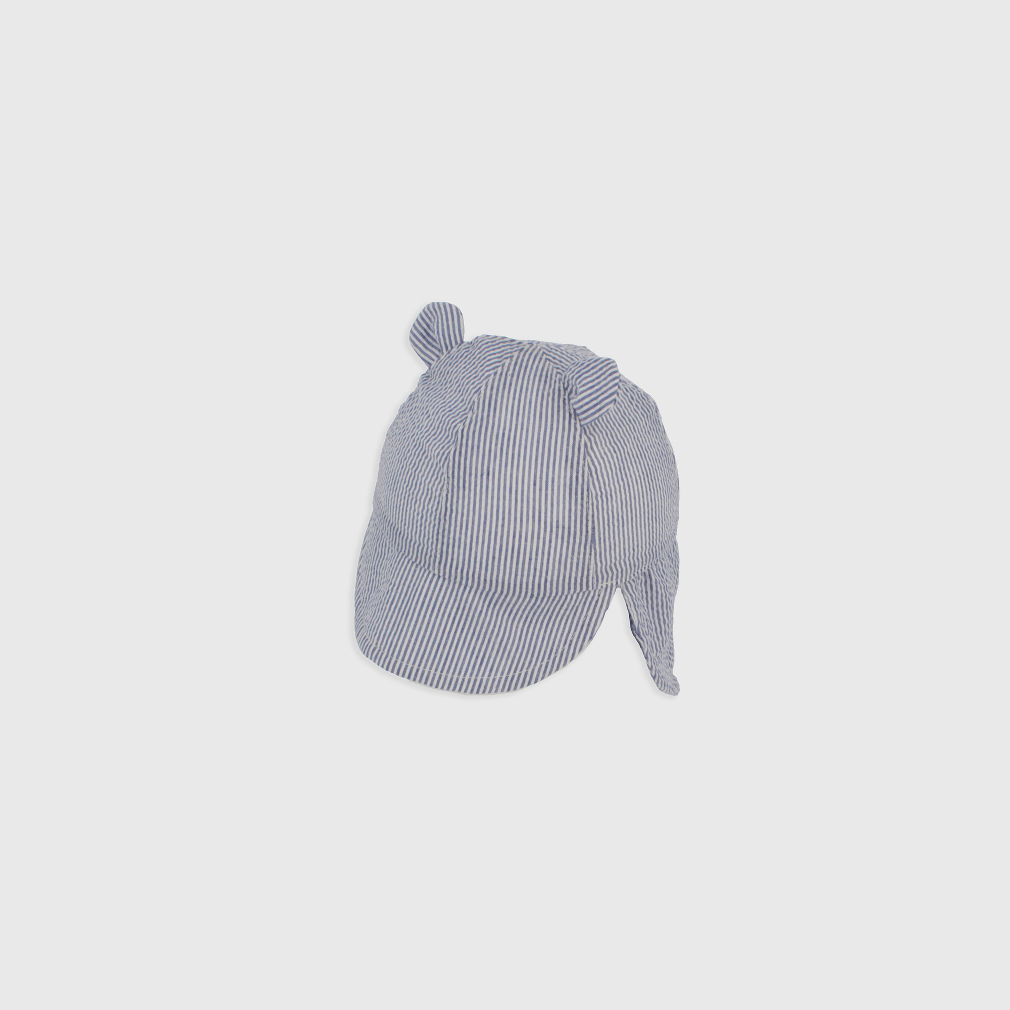 Cappellino baseball con righe tinto filo. Orecchie applicate.