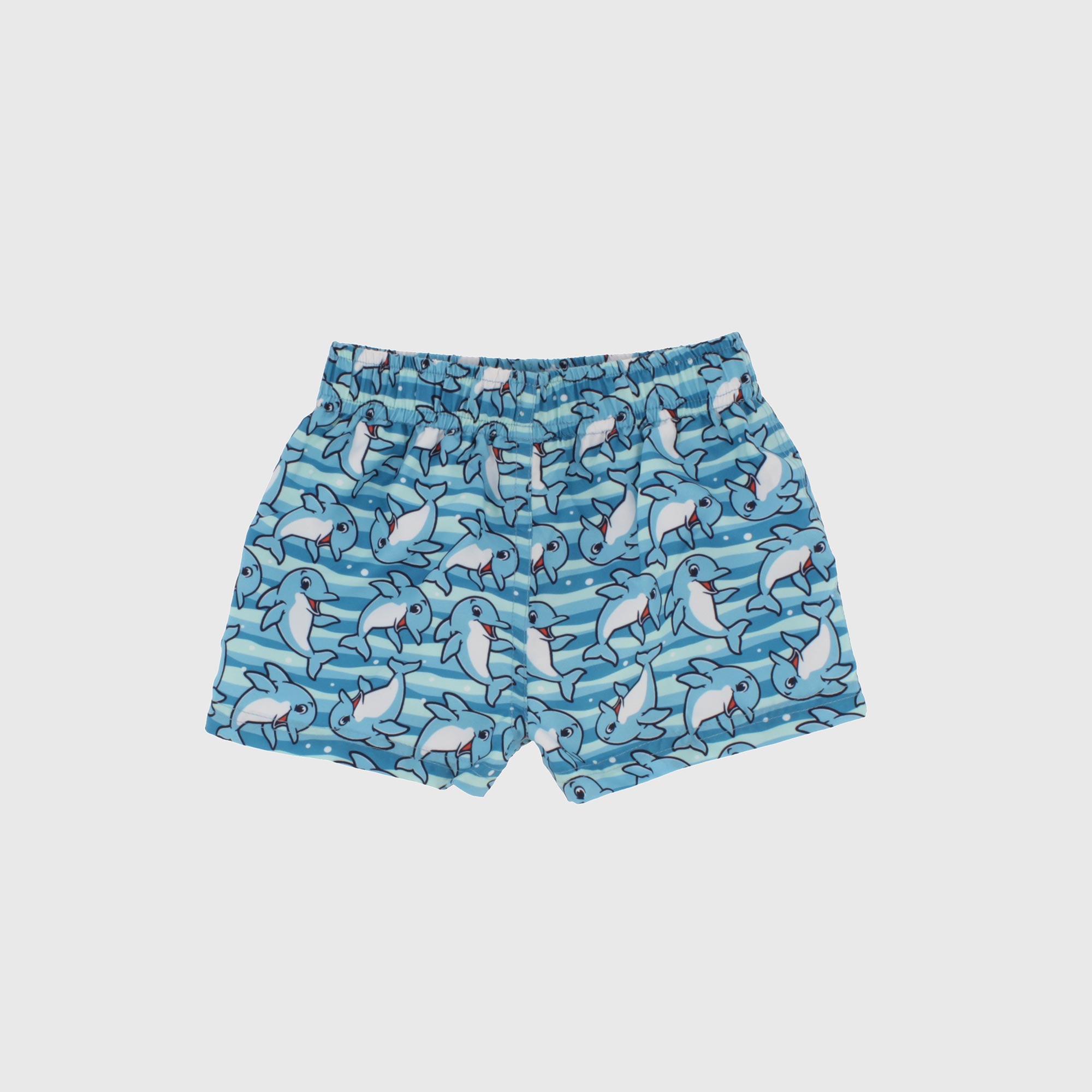 Pantaloncino mare a fantasia con vita elasticizzata e lacci frontali. Mutandina interna in micro-rete.