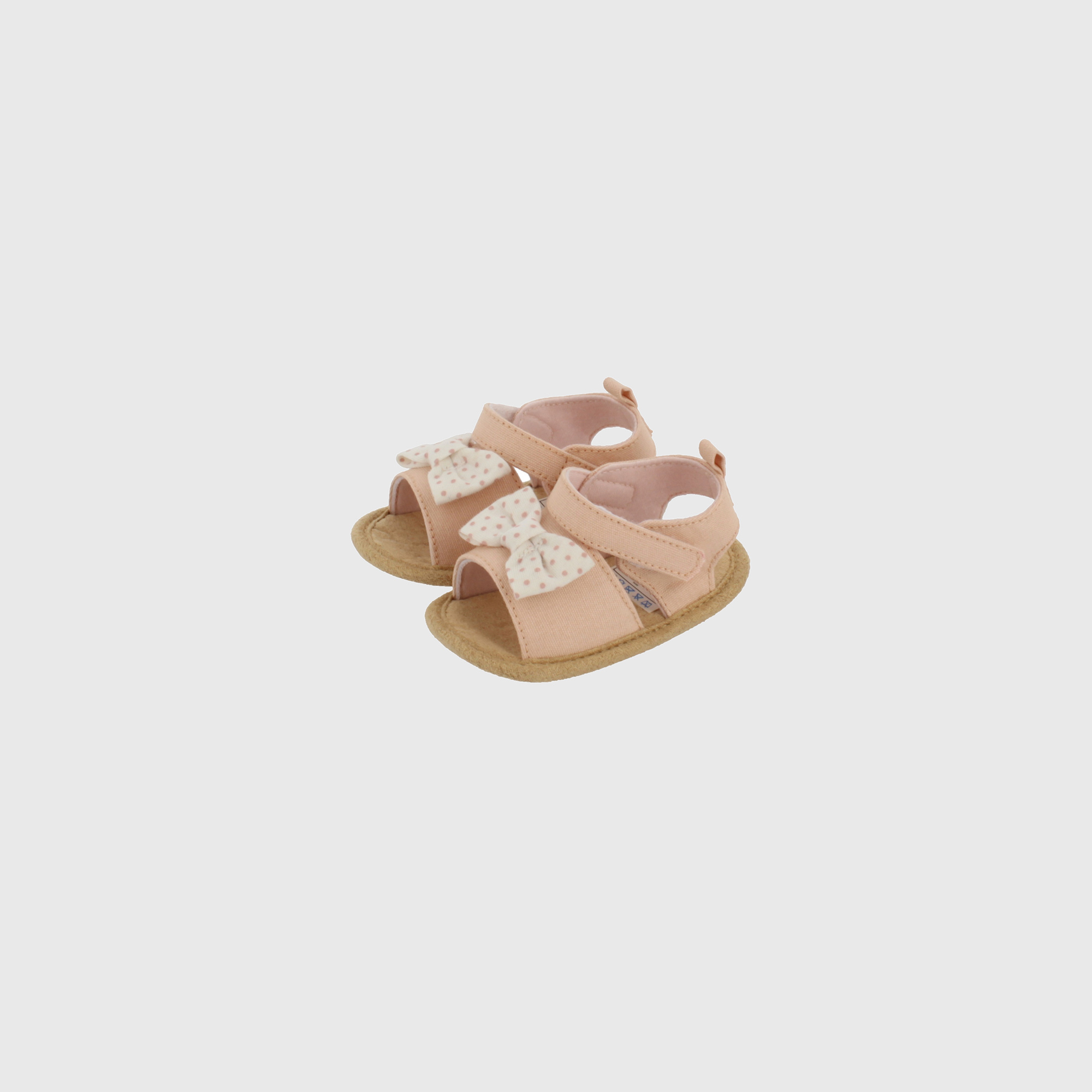 Sandalo newborn con velcro con fiocco a pois applicato sulla parte davanti.