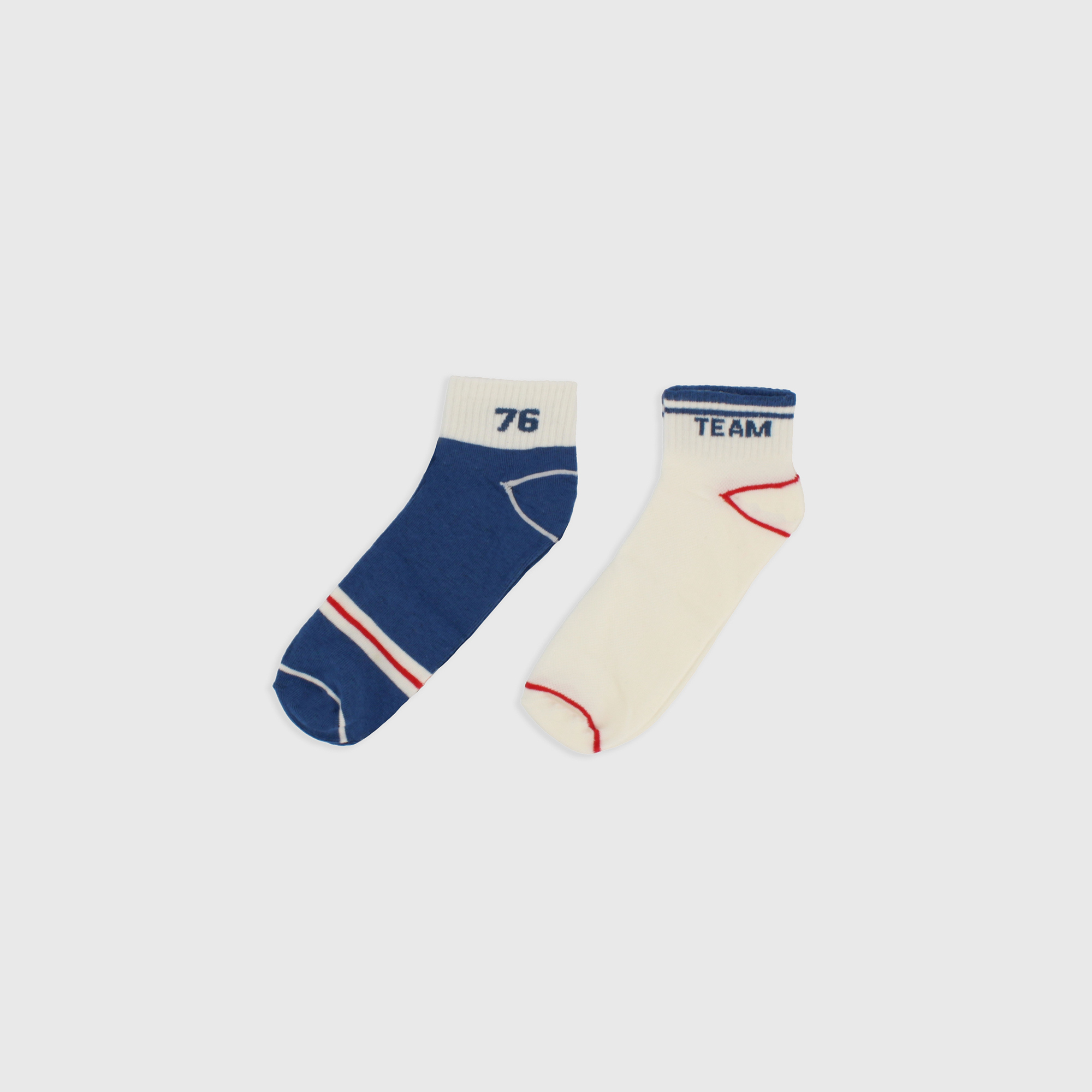 Confezione composta da due paia di calzini corti con dettagli a contrasto. Bordi elasticizzati.