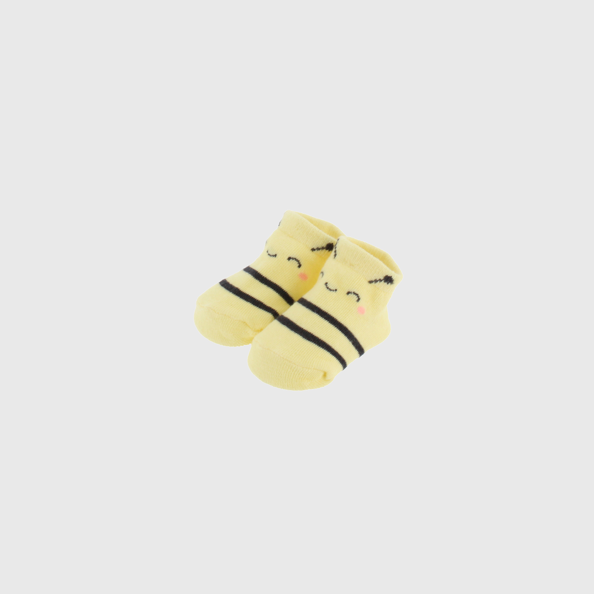 Calzini newborn motivo ape, con gommini antiscivolo. Bordi elasticizzati.