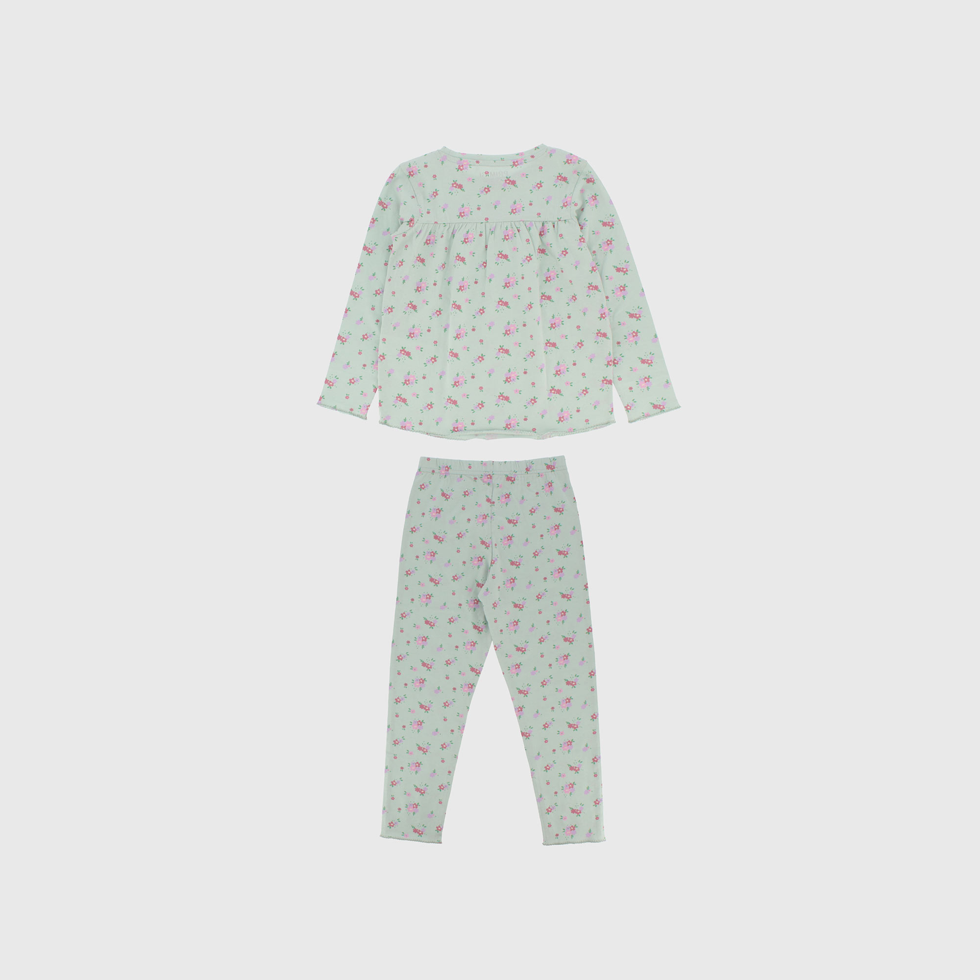 Completo pigiama in jersey con stampa all-over fiori. Maglietta girocollo a maniche lunghe. Pantalone con vita elasticizzata.