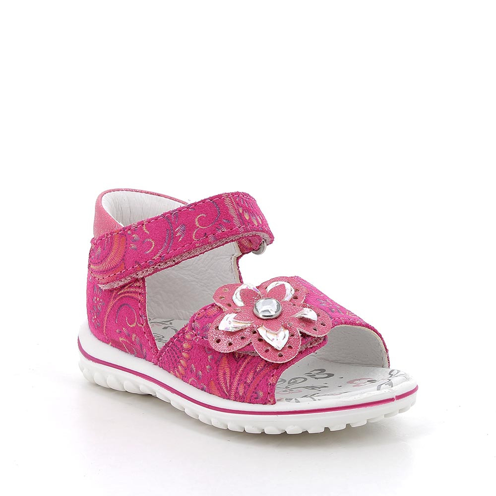 Sandali in pelle primi passi con applicazione floreale. Femminili e funzionali, si possono aprire totalmente e sono pratici da calzare. Il tallone è chiuso per dare massimo sostegno al piedino e le imbottiture alla caviglia lo tengono delicatamente in posizione. Sia la fodera che il sottopiede sono realizzati in pelle esente da cromo per creare un ambiente sano ed igienico. La leggerezza della suola li rende perfetti per accompagnare i movimenti senza costrizioni.