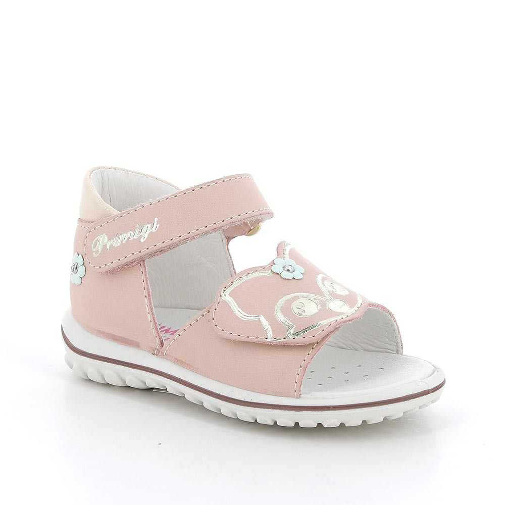 Sandali bambina con divertente animaletto per accompagnare in allegria i primi passi delle piccole. Realizzati in morbida pelle avvolgono il piede in modo naturale e delicato. Queste scarpine realizzano il giusto equilibrio tra protezione e freschezza e sono perfette per i giochi estivi in città o in vacanza. La loro forma arrotondata in punta lascia libero spazio di movimento alle dita e la suola leggerissima, non appesantisce i passi, ma li asseconda con naturalezza.
