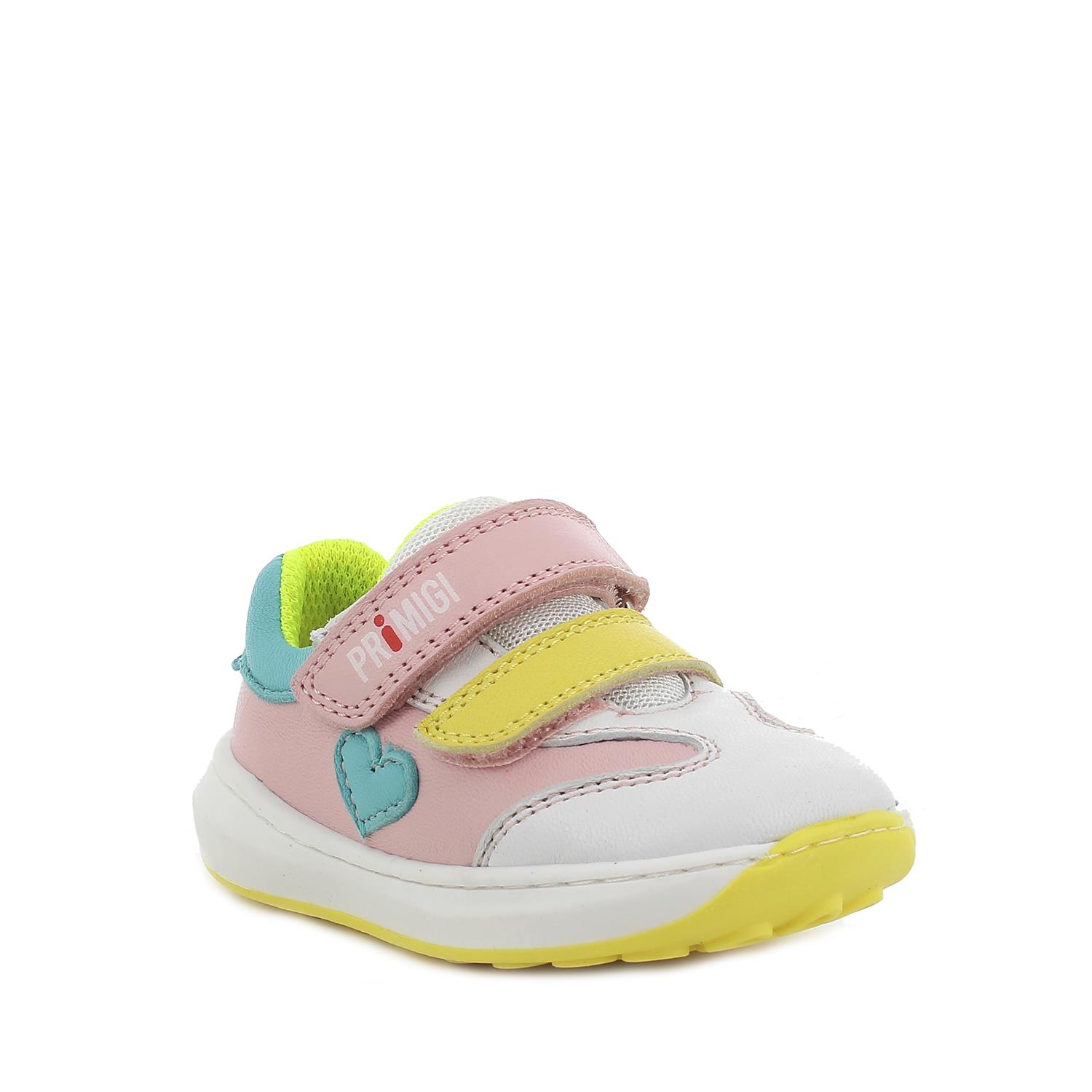 Scarpe in pelle da bambina bianco-rosa-verde-giallo