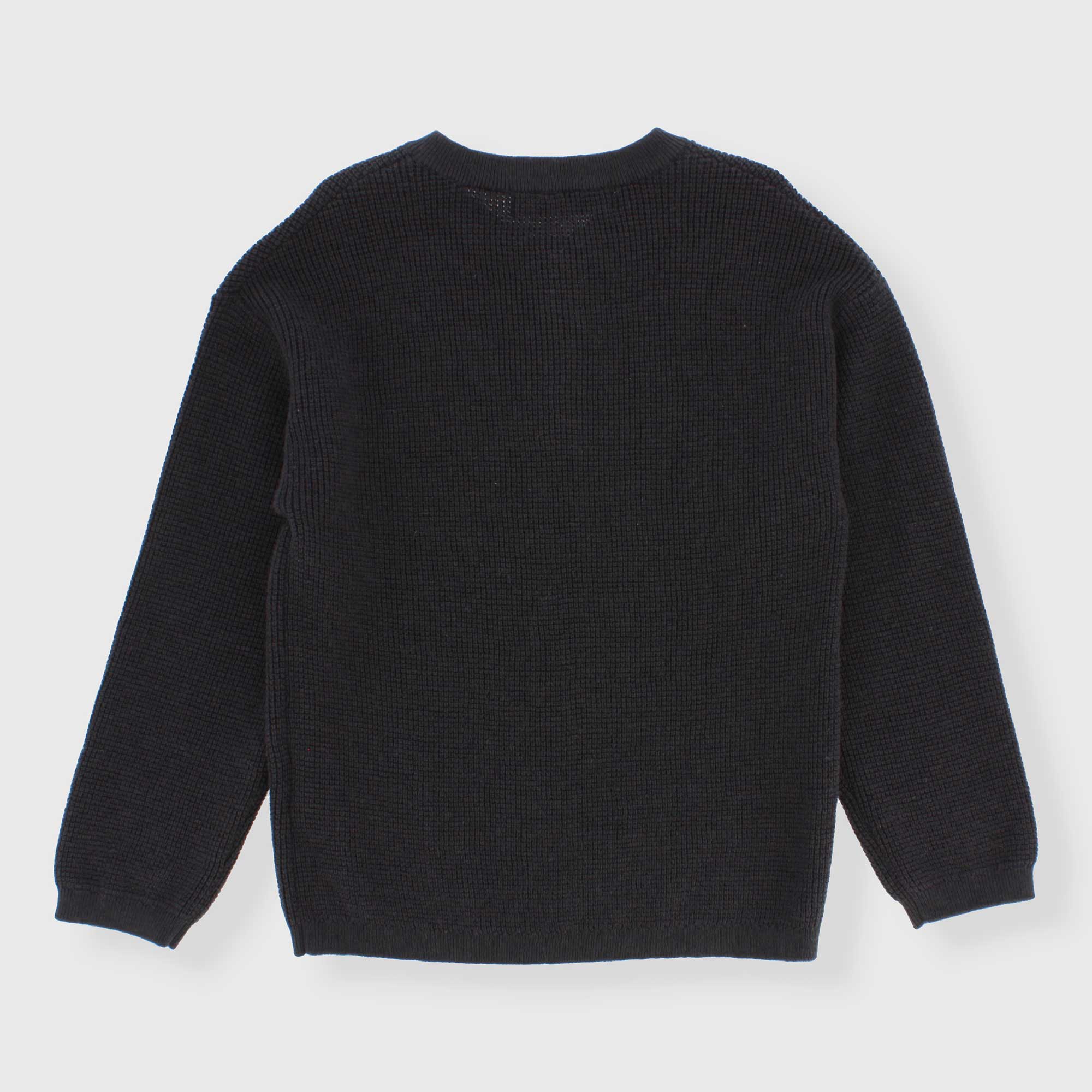 Serafino in morbida maglia, a maniche lunghe. Bottoncini sul davanti.
