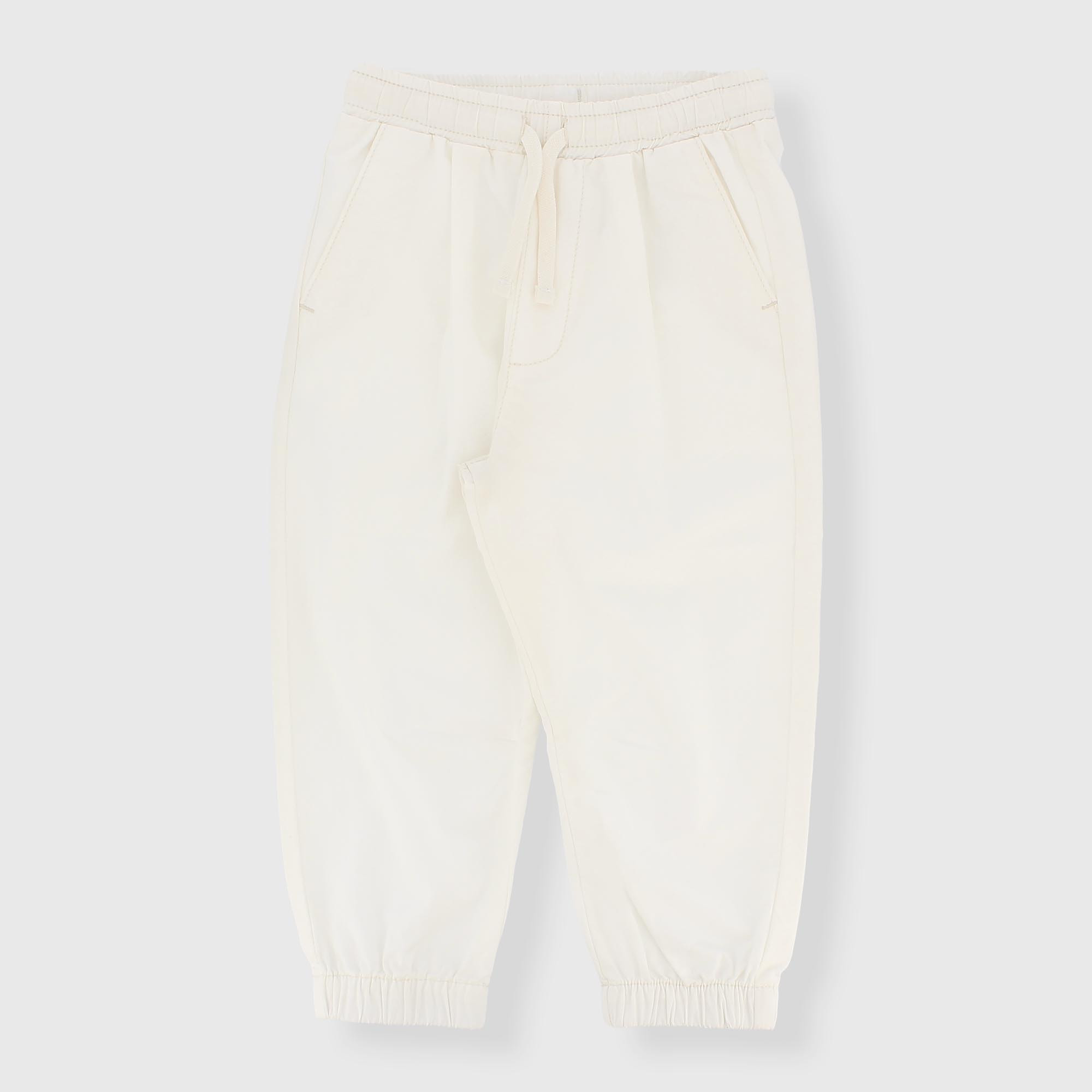 Pantalone in popeline tinto capo con vita elasticizzata e lacci frontali. Tasche alla francese. Fondo elasticato.
