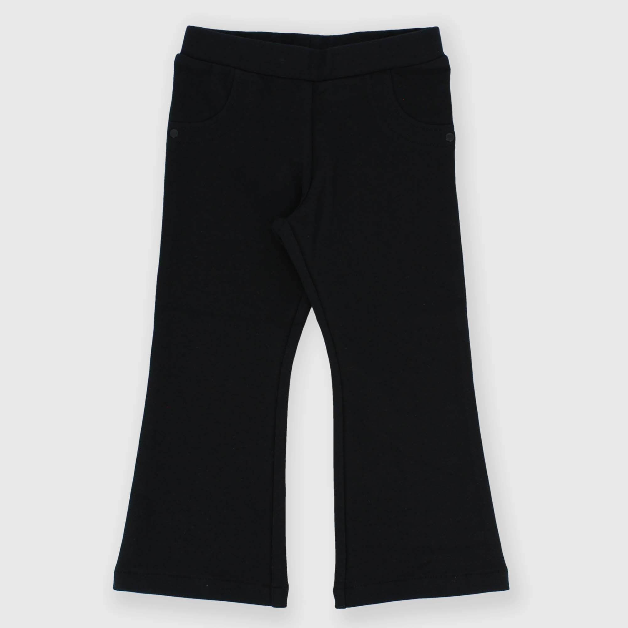Pantalone a trombetta in felpa con vita elasticizzata. Finte tasche sul davanti.