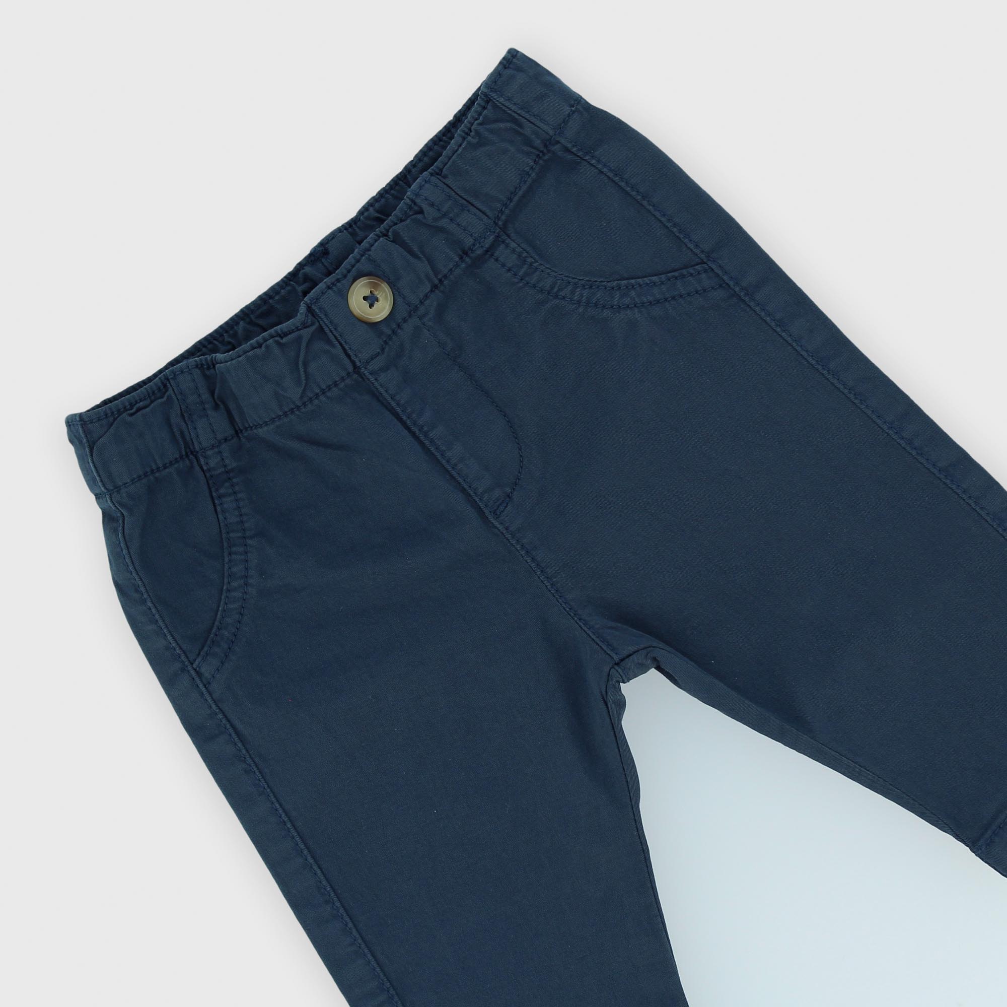 Pantalone in gabardina stretch con vita elasticizzata e bottoncino.