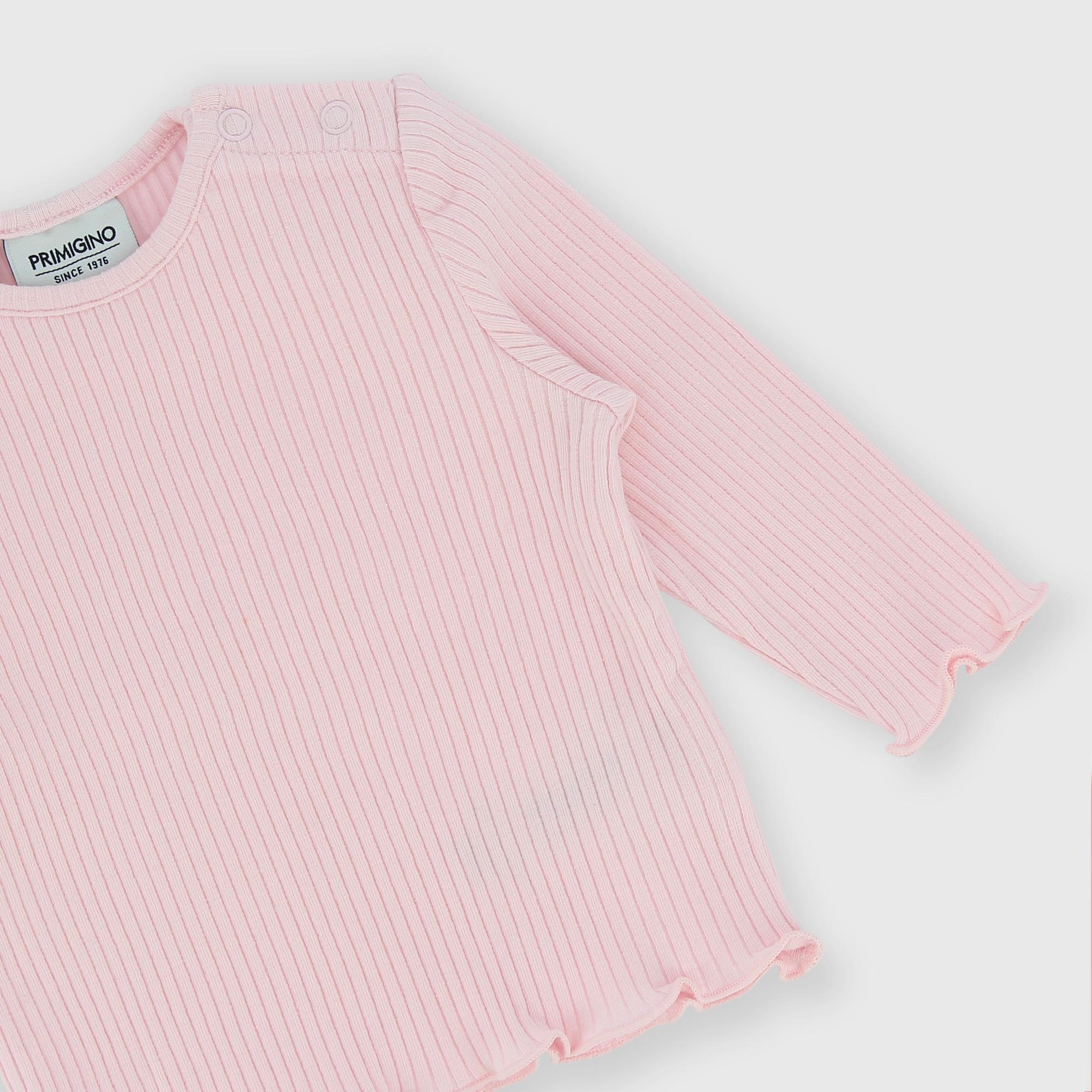 Maglietta in costina a maniche lunghe da neonata, rosa