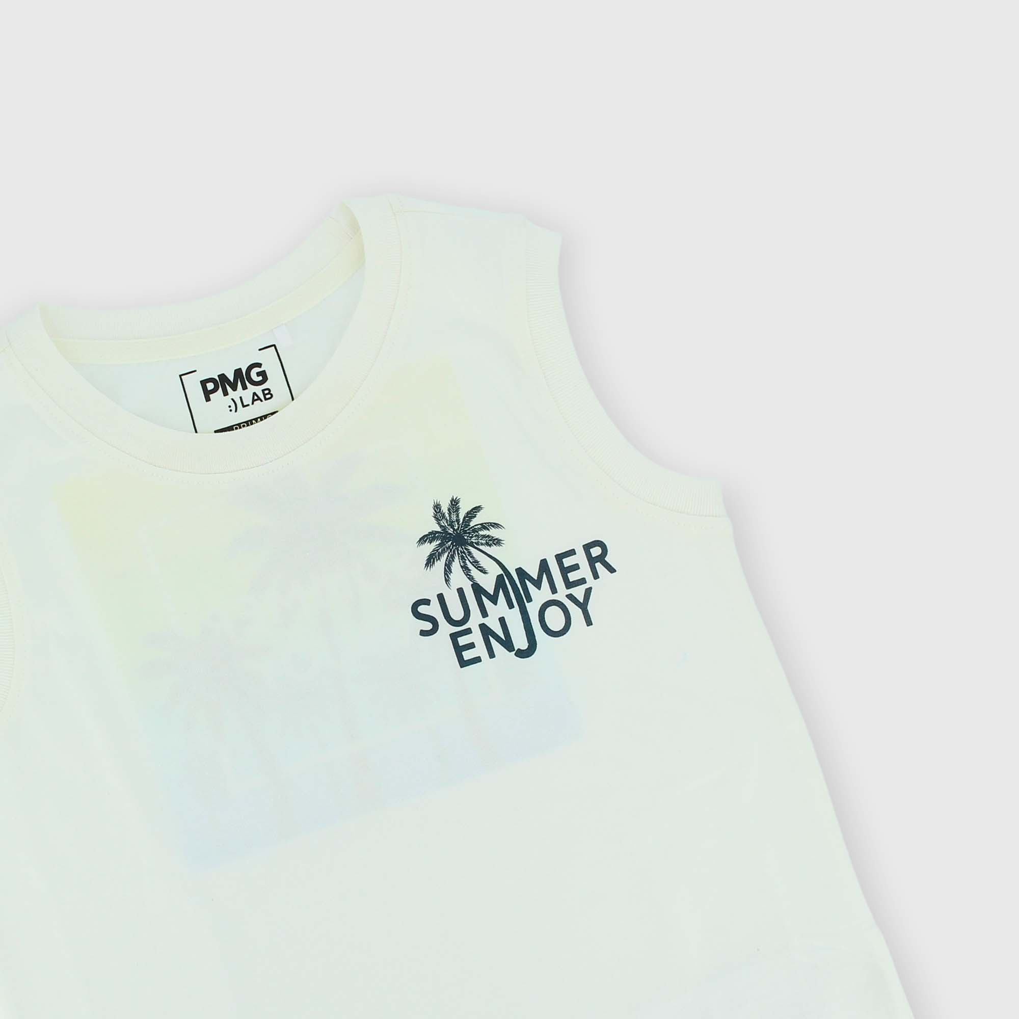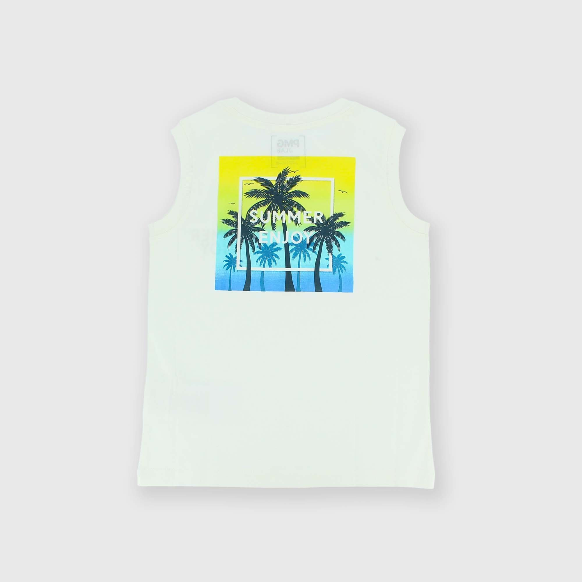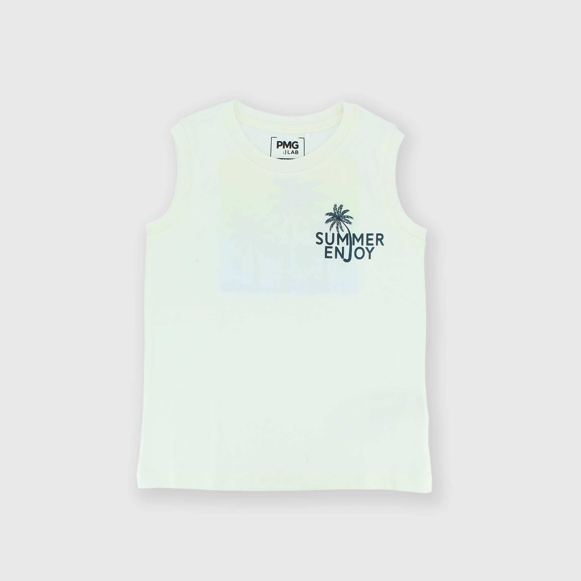 Canotta in Jersey girocollo. Piccola stampa sul davanti e sul retro.