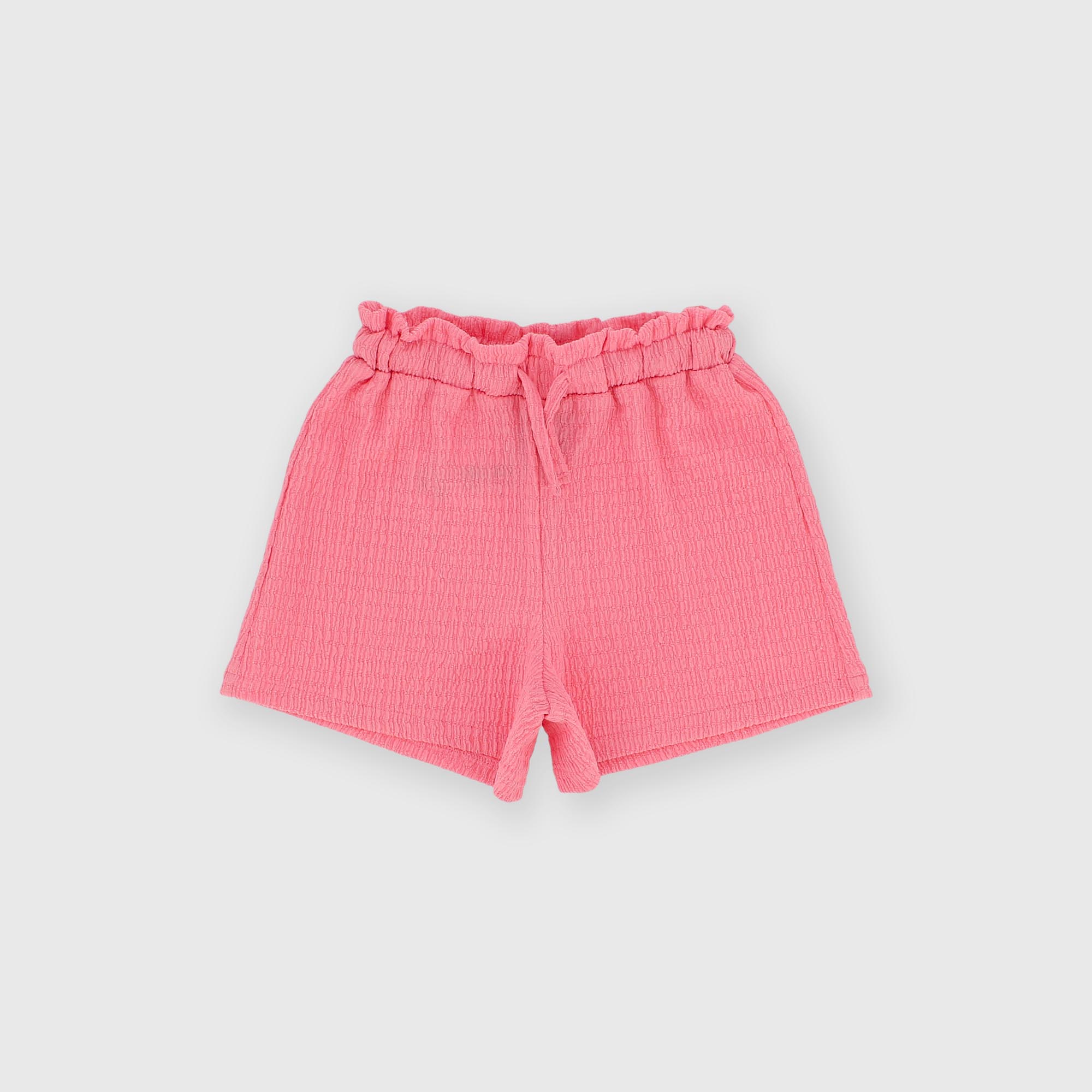 Shorts in seersucker con vita elasticizzata e lacci frontali.
