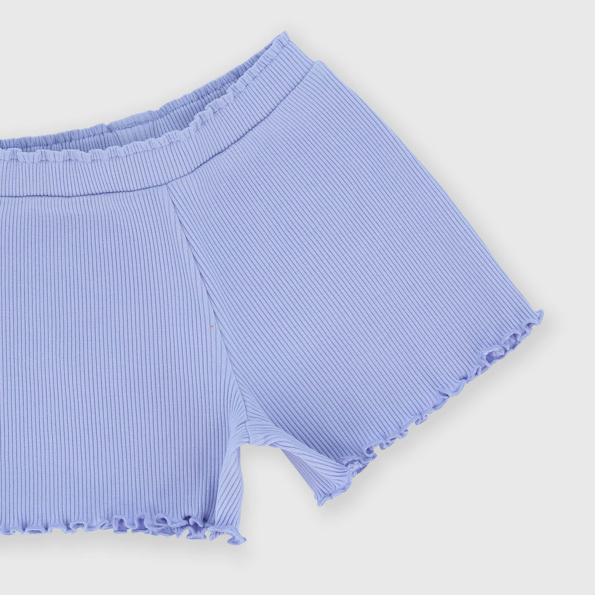 Shorts in costina con vita elasticizzata. Rifiniture con punto bambola.