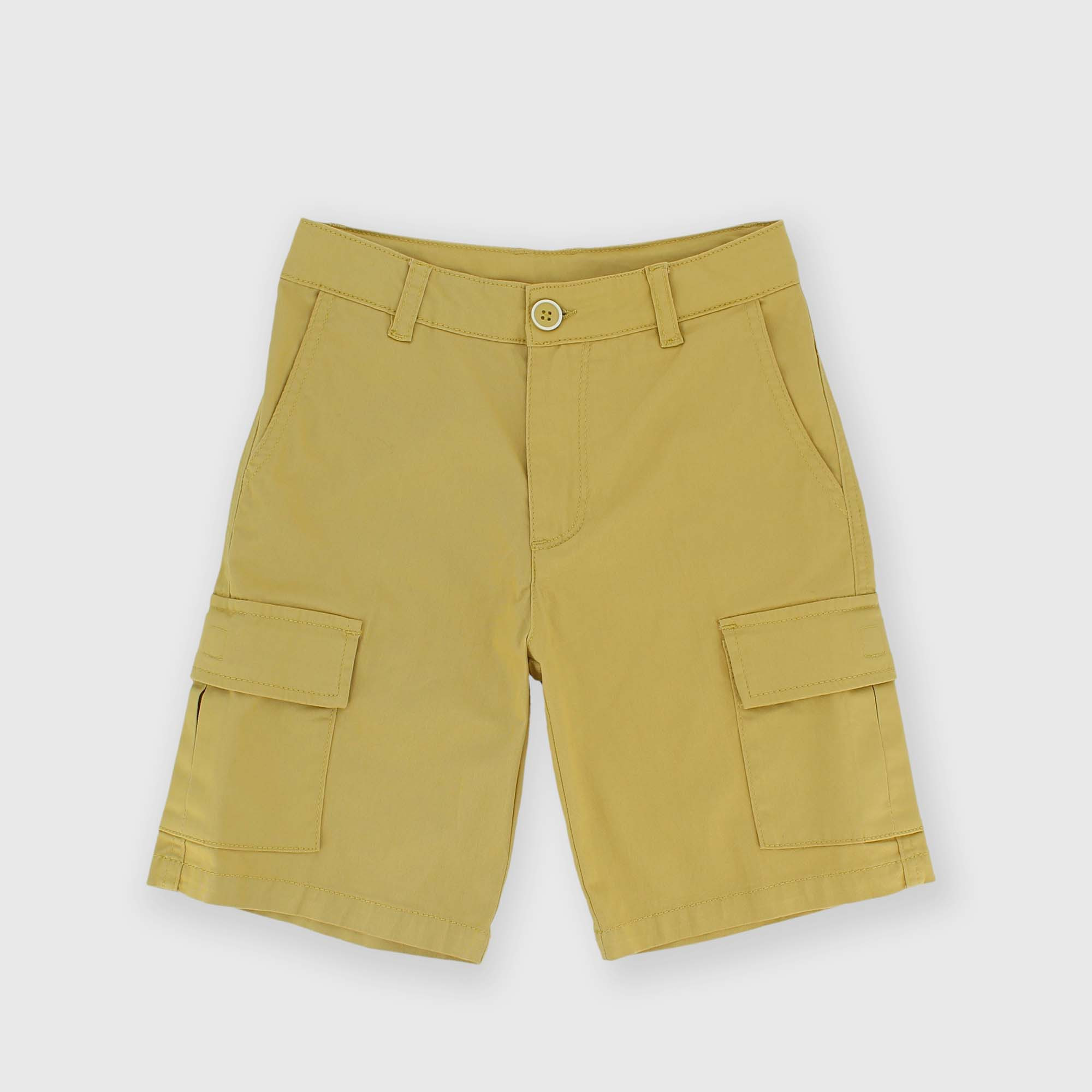 Bermuda in gabardina elasticizzata con vita regolabile all'interno. Chiusura con bottone e zip. Tasche alla francese sul davanti, a toppa con pattina sui lati e a filetto con pattina sul retro.